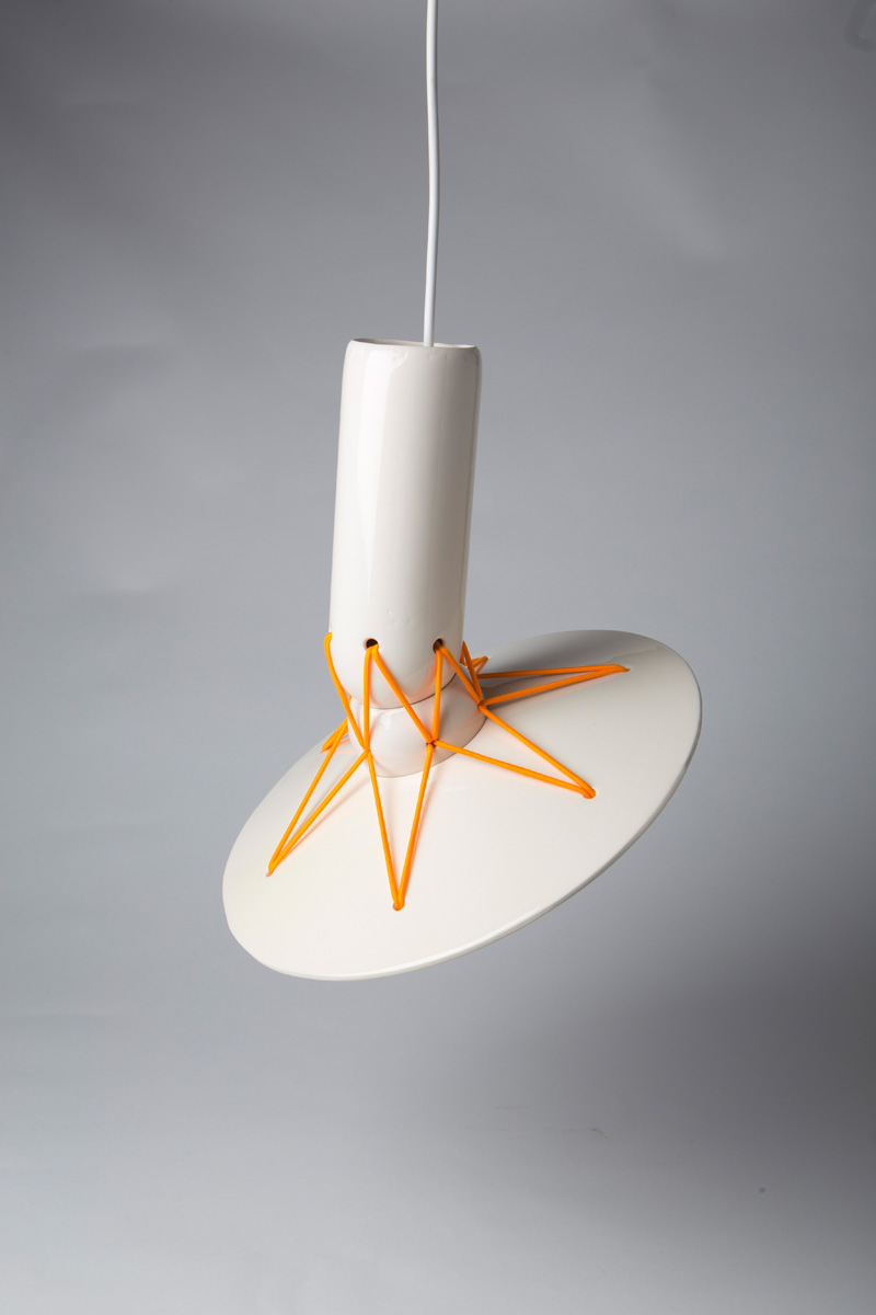 Simple geometric components linked by elastic cords reveal the function as a visual feature. The playfulness of the system invites you to manipulate the lamps and enjoy the tactility and the feeling of the pieces sliding smoothly around each other. Elastic Lights is functional application of ceramics in movement that offers a new way of experiencing the material, more playful and engaging. Please touch!