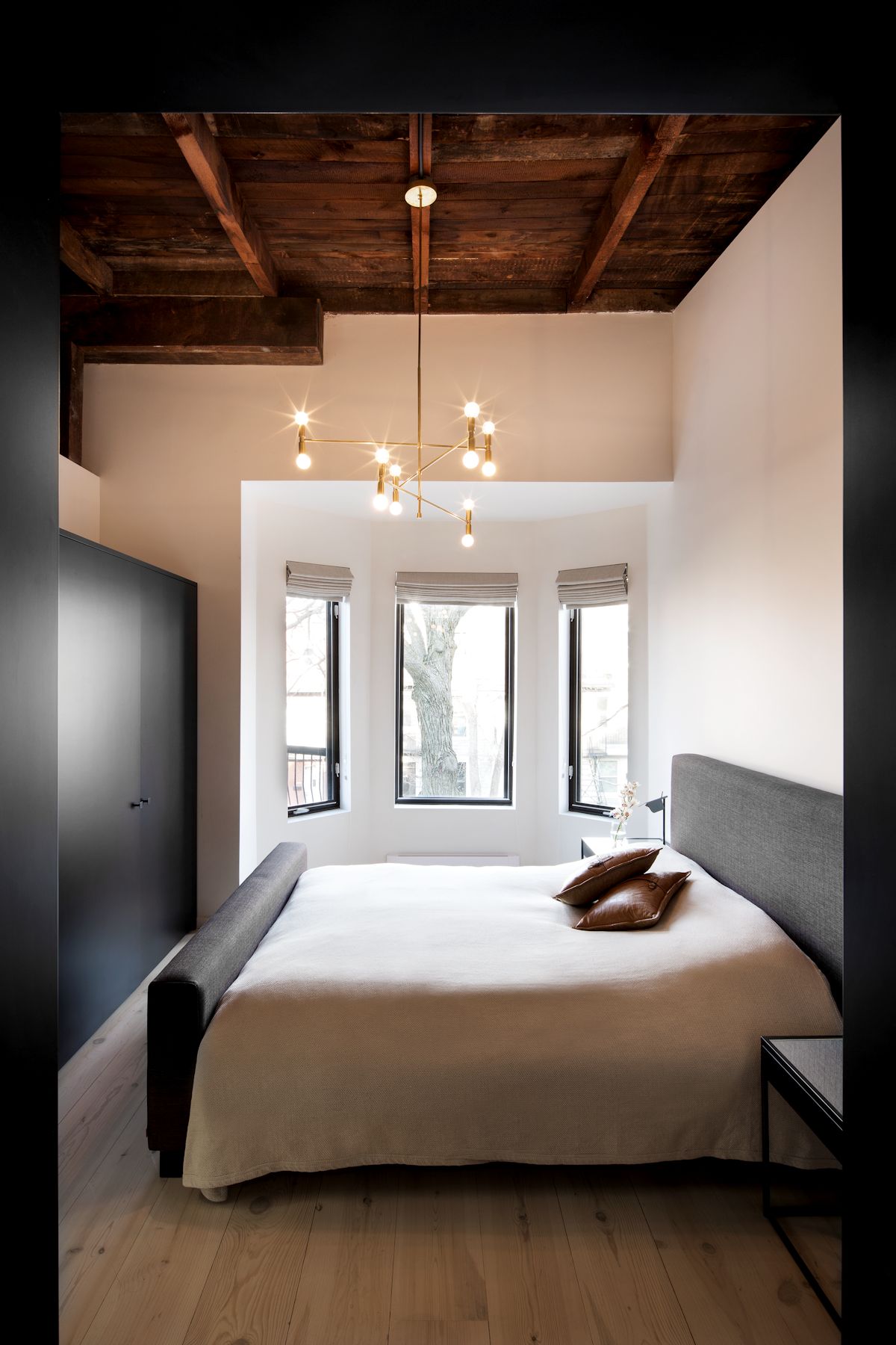 The client had just bought this un-renovated 1910’s triplex and wanted to make the top floor his own. Inspired by his Scandinavian origins and the apartment’s characteristic Montreal construction, the architect and designer shaped the renovation using raw materials such as wood and steel, peeling away at the building’s envelope. The original roof structure was preserved and exposed in the bedroom as well as the brick party walls in the living room and entrance stairs.