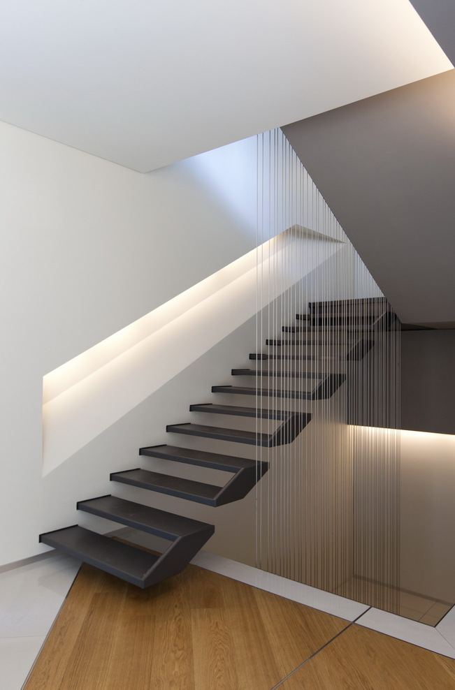 Yesterday, we featured floating desks, and today we see these floating stairs that Kuadra Studio included as part of their design for a bank office in Caraglio, Italy.