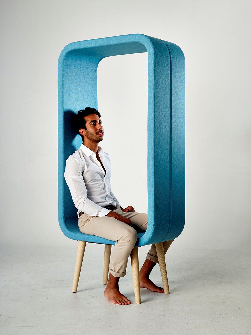 My contribution to Materia´s 2014 range is Frame. A basic rectangular shape forms a graphical easychair with its versatility contributing to a creative and inspirational atmosphere. Frame works like a three-dimensional picture in different rooms and environments, and frames the person who sit in it. The user becomes the object in the furniture, so now you can be your own Mona-lisa! At the same time it has a high degree of spatiality because of the walls and the ceiling, which let you have your own quiet space.