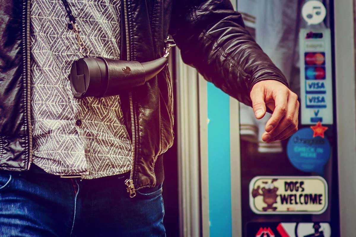 Goat is a practical and sustainable coffee mug, paying homage to the goats that discovered coffee. Its horn shape not only tells the original story of coffee but also helps you drink the last sip and makes you look good. The leather holder simply turns into a coffee mug stand, so you can easily keep the mug on your desk. Goat comes with a set of two straps (short and long part combine into one), so you can simply attach it to your bag or just let it fall across your shoulder. This way you can carry your books or bags and talk on the phone while carrying your coffee around. It’s 100% leak proof so don’t worry about getting coffee stains on your jeans. It’s also safe for your health because it’s BPA free.