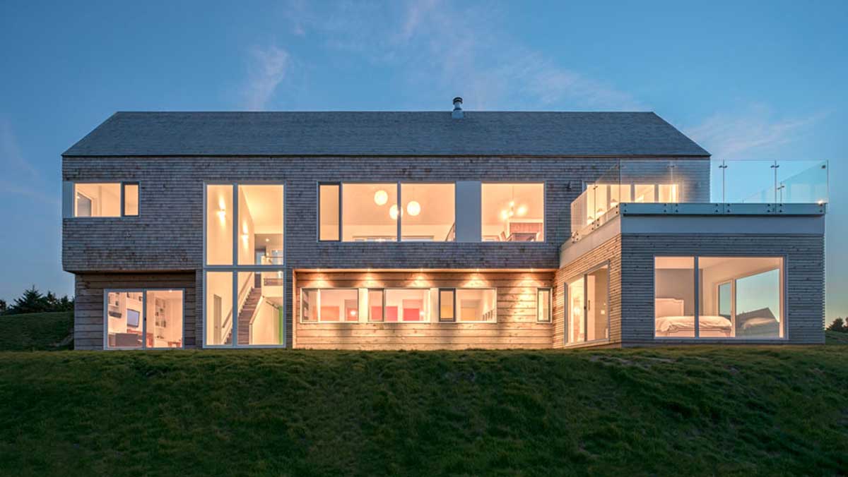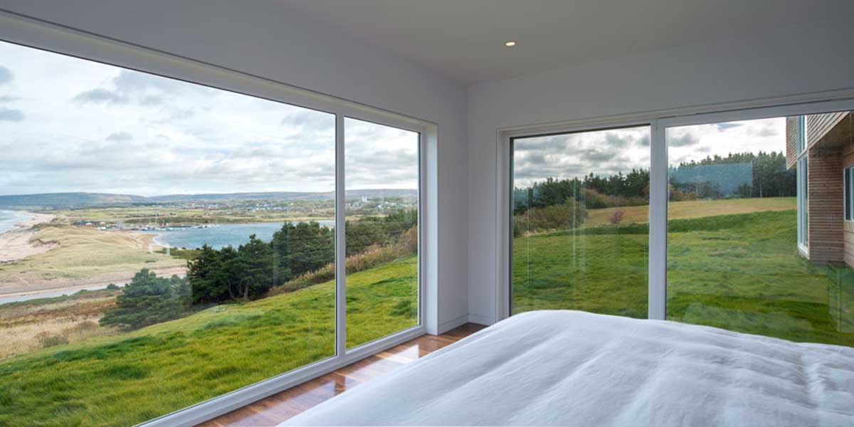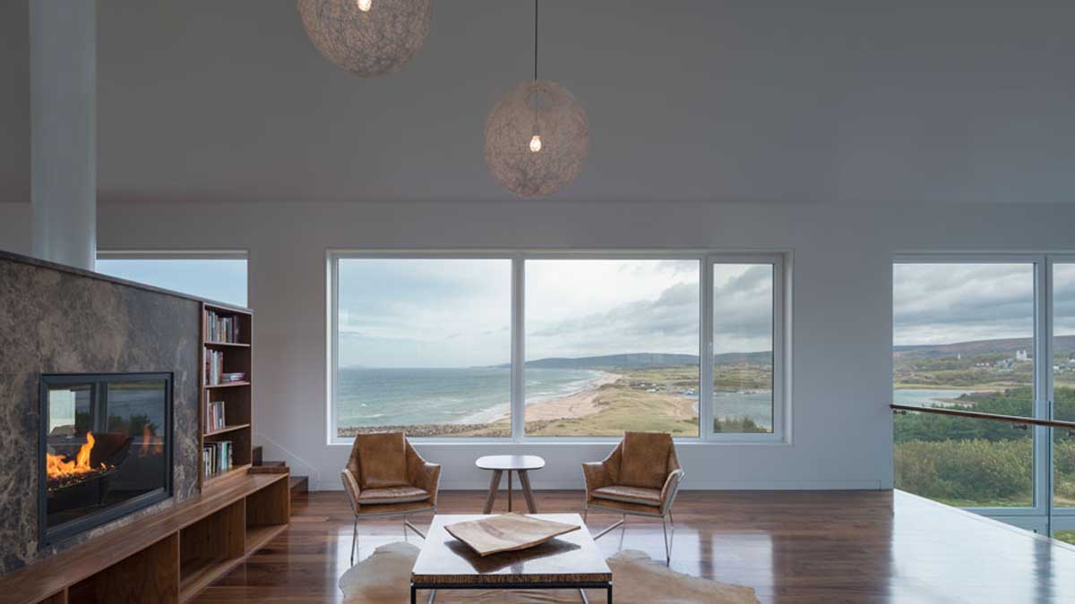 Sitting atop a hillside adjacent to the Inverness Harbour and MacIsaac’s Pond, the cedar clad minimalist gable overlooks the town of Inverness and the critically acclaimed Cabot Links golf course.