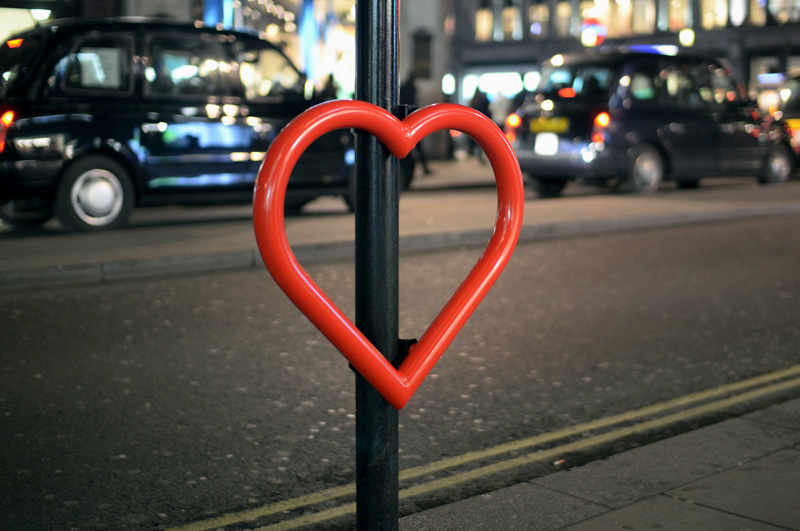 Artist Graham McLoughlin together with cycle rack manufacturer Cyclehoop, have created #HeartsOfLondon, an installation of 14 heart-shaped bike racks placed throughout London in support of the British Heart Foundation.
