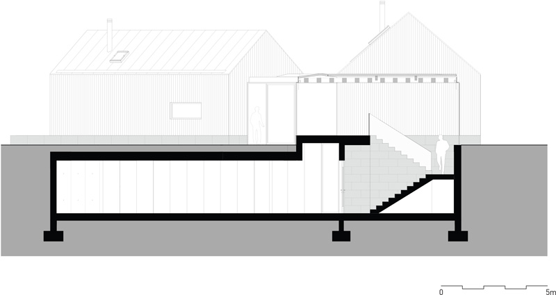 The modest dimensions of the existing building determined the scale of the house while the vernacular identity influenced its layout. Each volume has a two slope roof. Besides emphasizing its individuality it enabled to increase the plasticity of the composition.