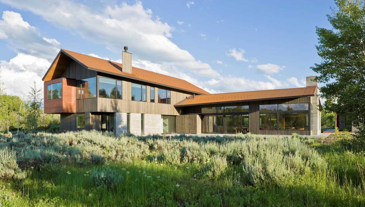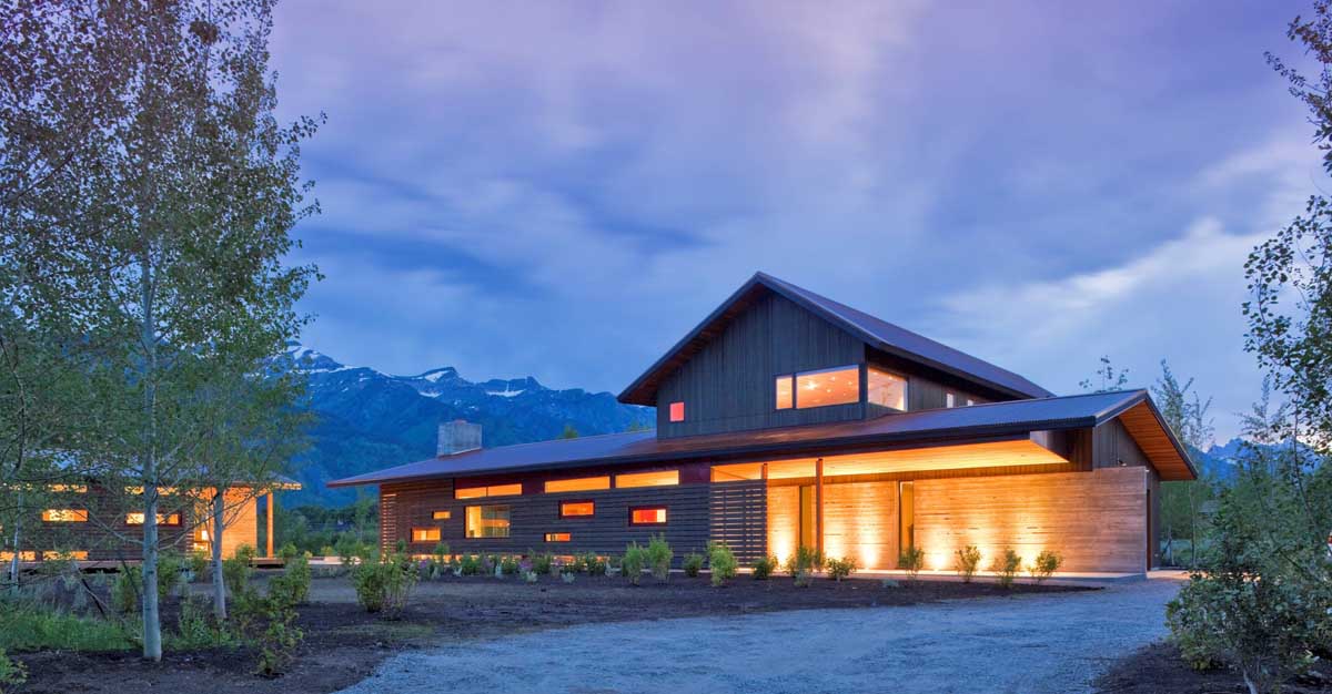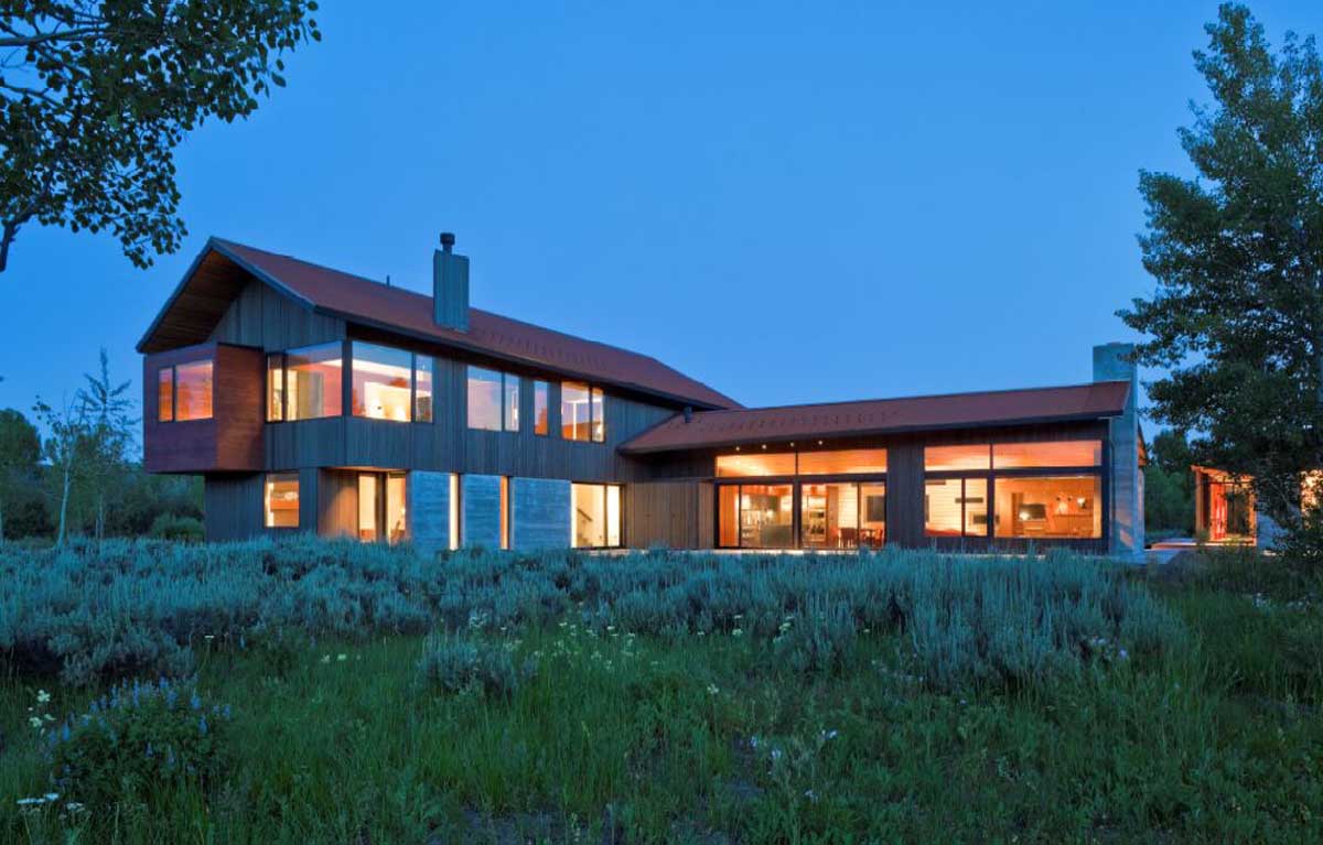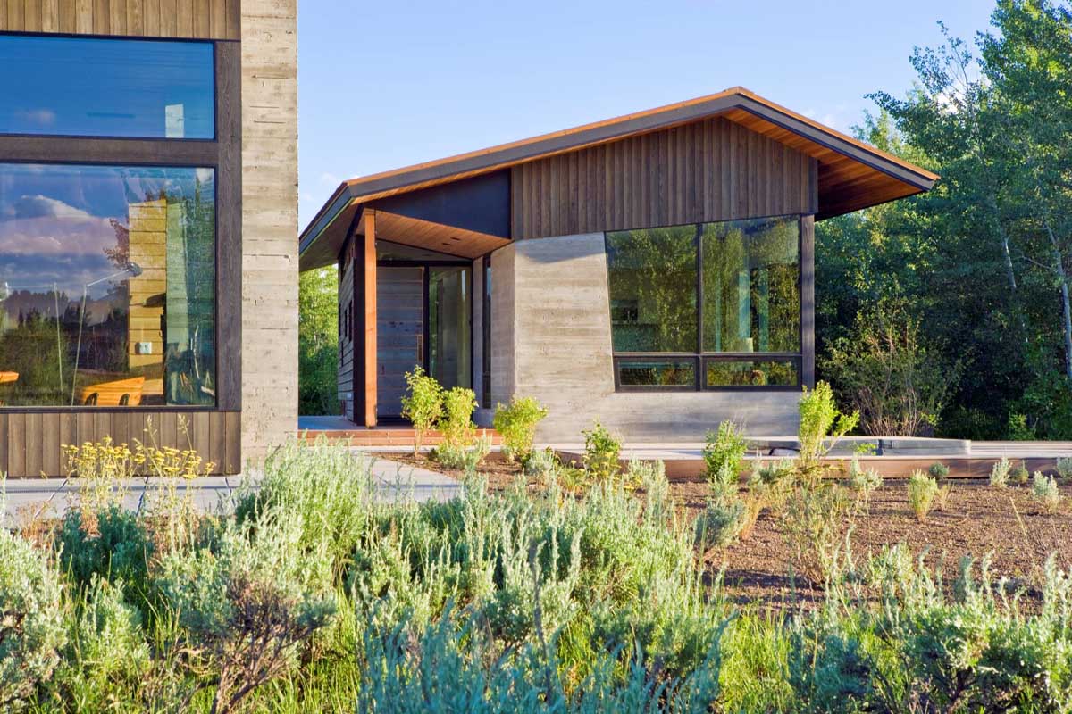 Dynia Architects designed the John Dodge Residence, a contemporary home and guest house in Jackson, Wyoming.