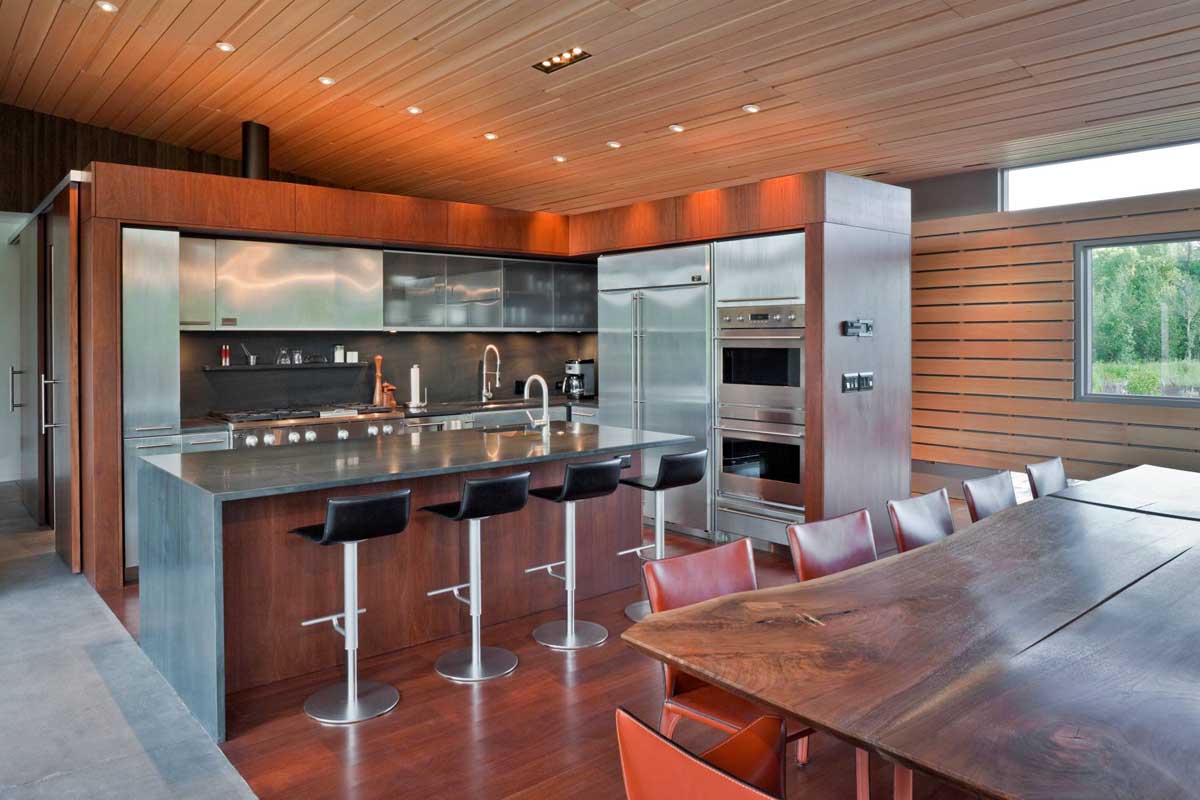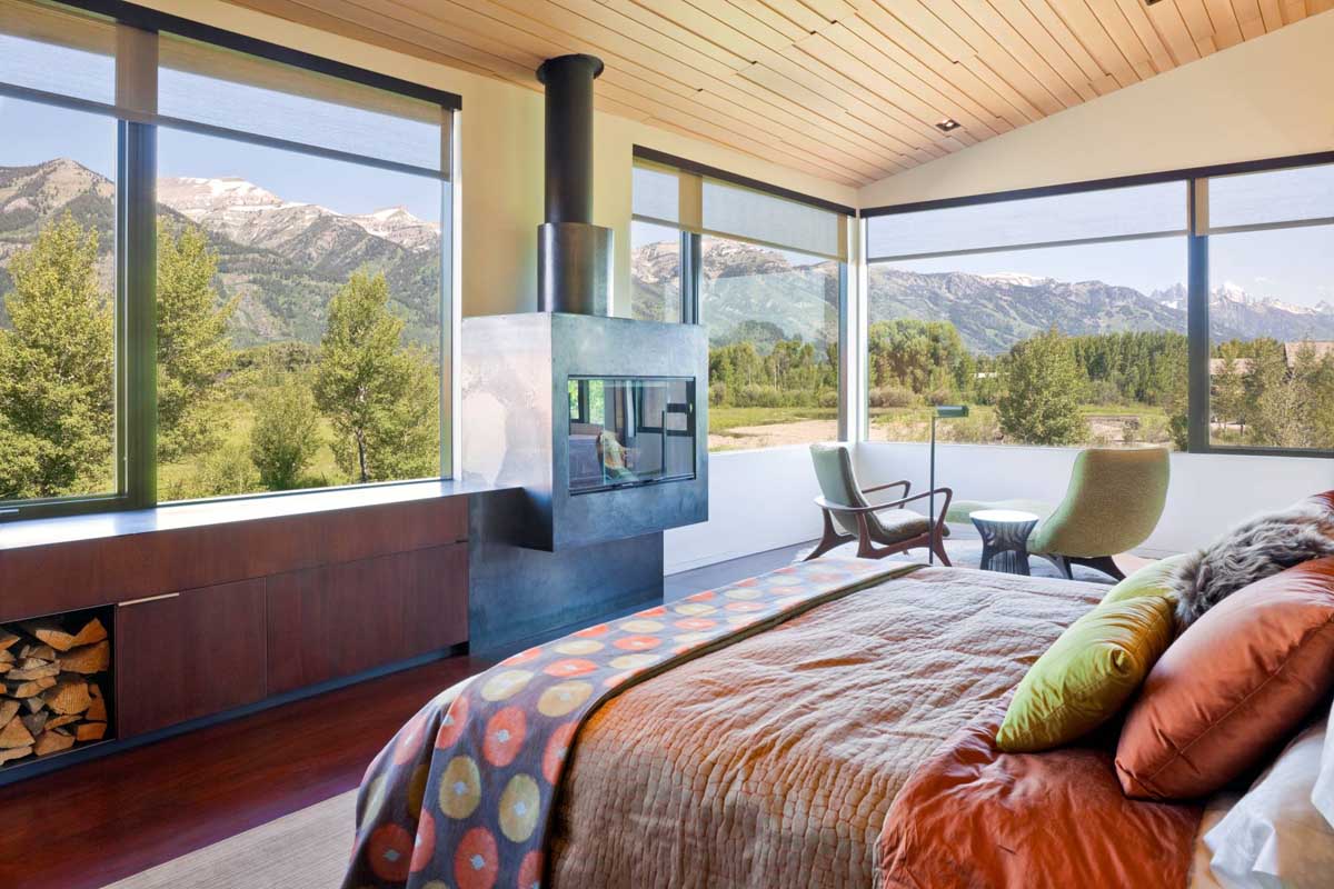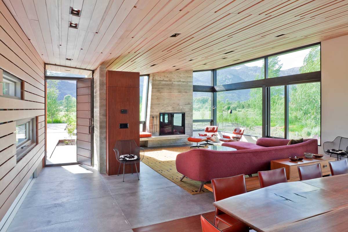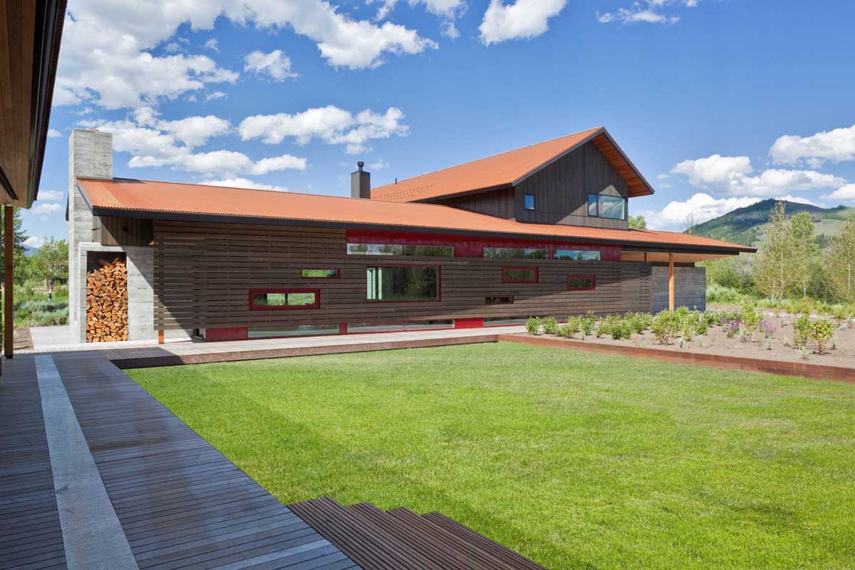 Dynia Architects designed the John Dodge Residence, a contemporary home and guest house in Jackson, Wyoming.