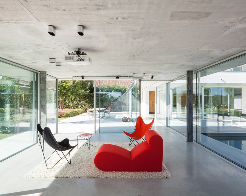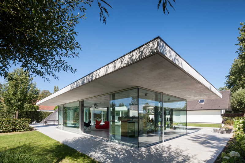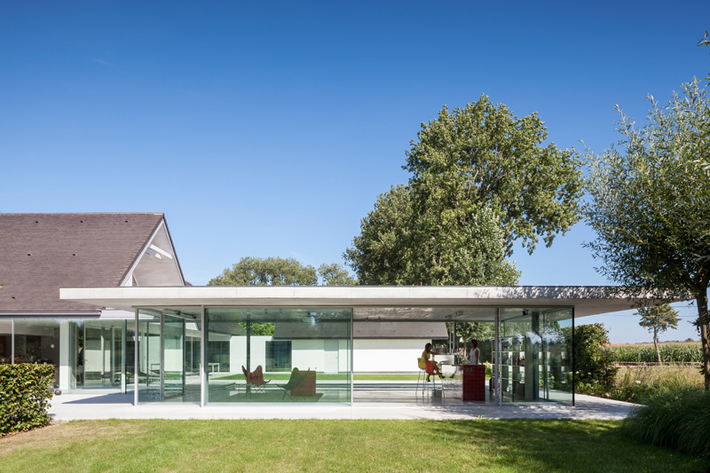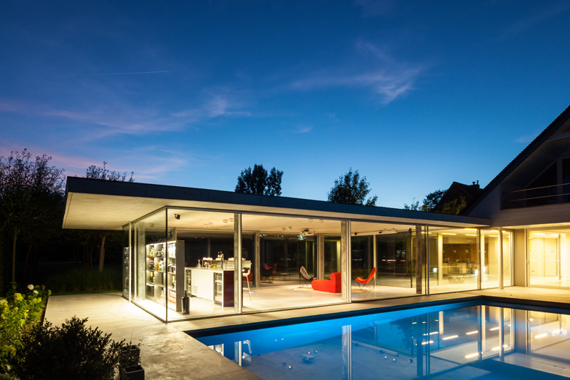 Architect Lieven Dejaeghere has designed a glass enclosed pool house for a home in Belgium.
