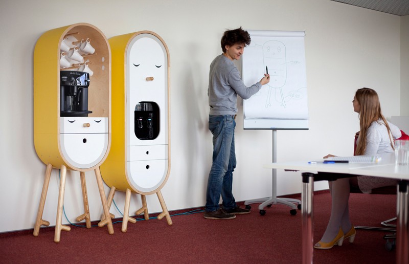 A collection of objects to complement the basic office kitchen. Each module is intended for one of electrical appliances and its accessories such as cups, plates, cutlery, tea, coffee etc. The objects may be easily located all around the office, wherever it is needed.