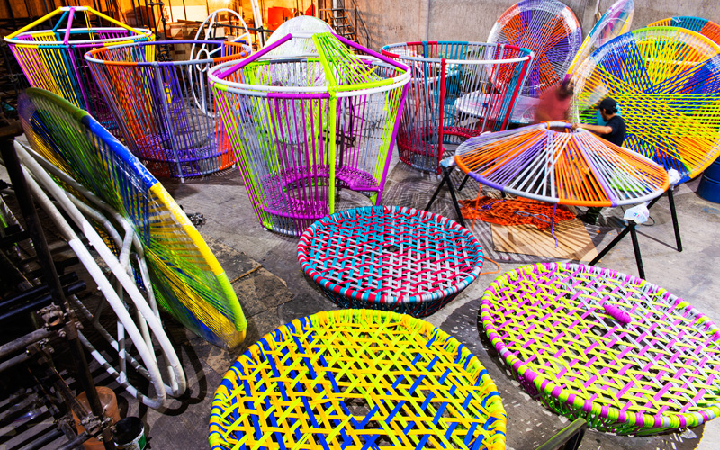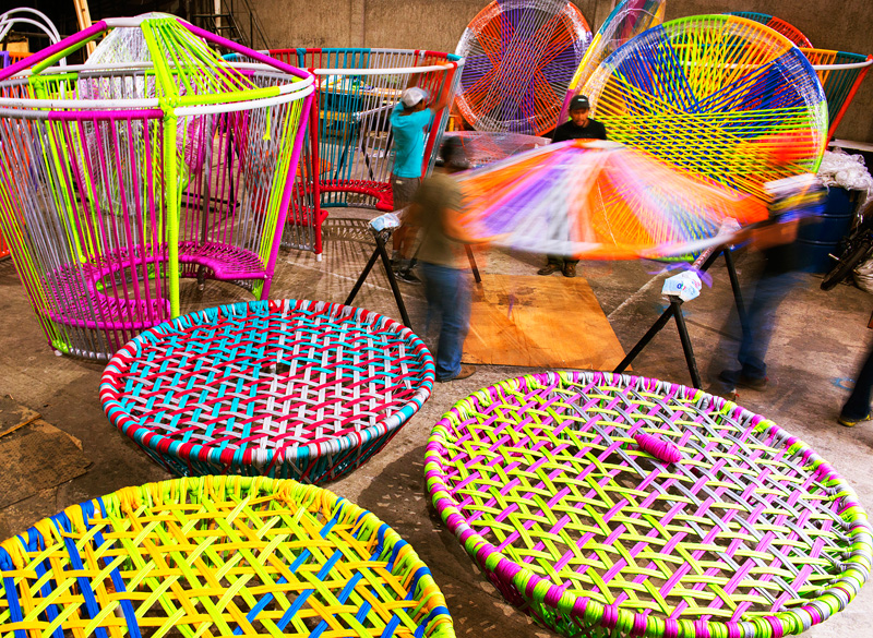“The concept behind -Los Trompos- is based on an approach of traditional toys, their colorful expression and the way they are constructed. We wanted to talk about the traditions and skills of the craftsmen in Mexico, as an inheritance of our culture. We like the idea of translating these techniques into new symbols” said Esrawe.