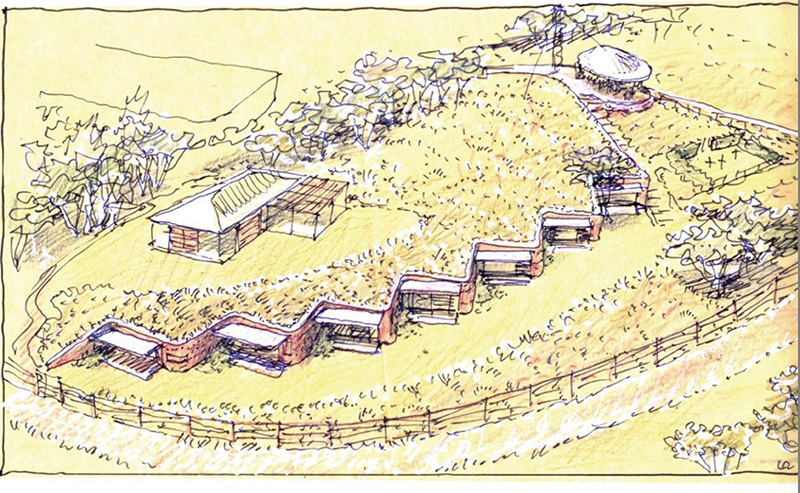 The design of the accommodation represents a new approach to remote North Western Australia architecture, moving away from the sun baked, thin corrugated metal shelters to naturally cooled architectural earth formations.