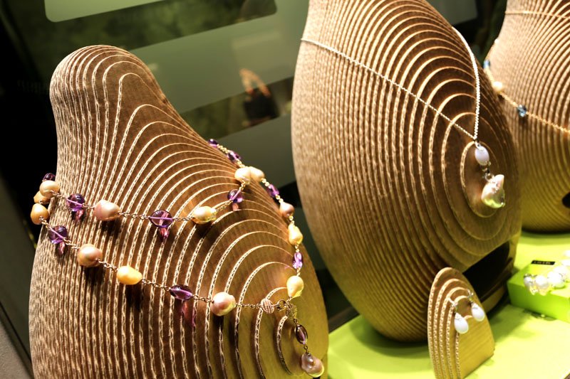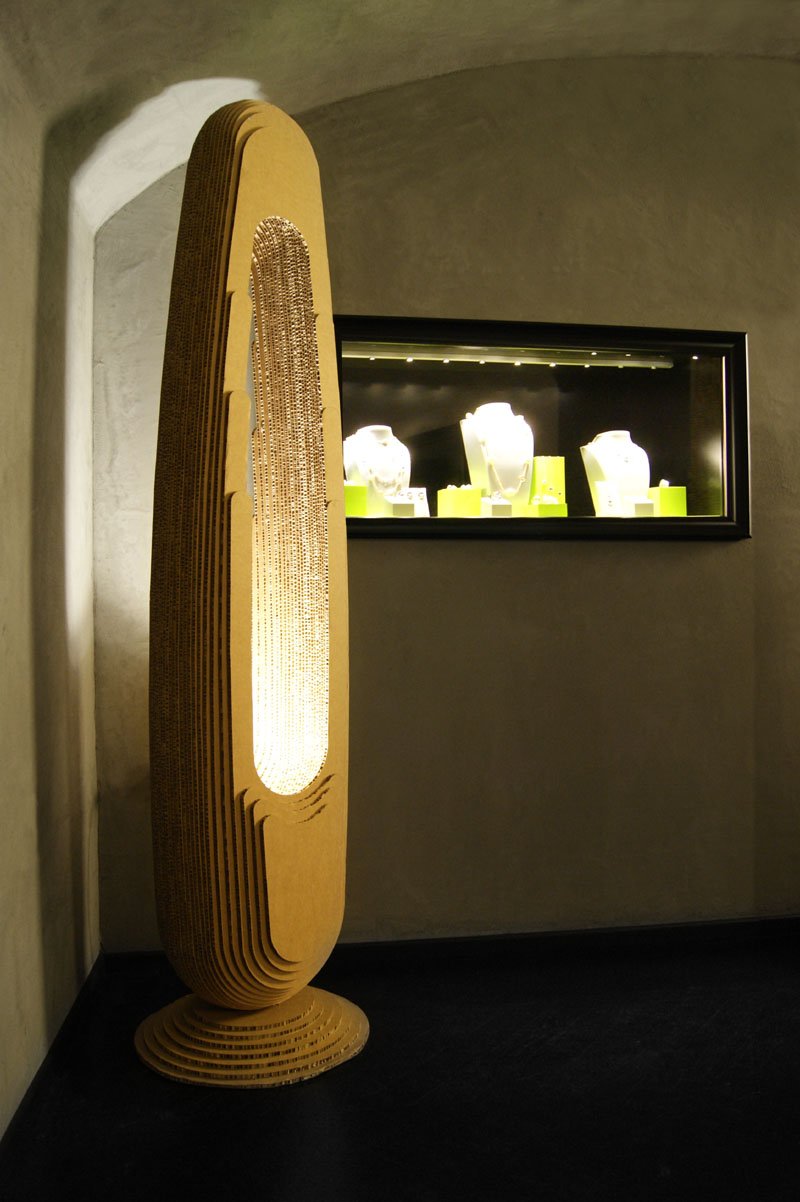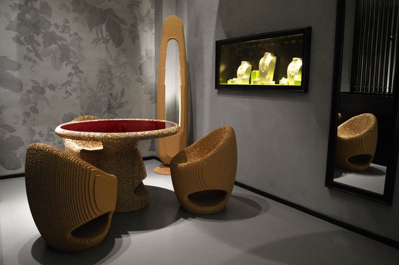Luxury and ecology merge together in the intriguing eco-design exhibition promoted by the Boutique MIMI’ Gioielli and the Origami Furniture, brand specialising in the manufacture of eco-friendly furniture. Set in the heart of Milan, this fascinating temporary exhibition-gallery hosts the latest recycled cardboard creations designed by architect Giancarlo Zema. Exhibited between the jewelry of MIMI’ the Canyon Collection, inspired by the sculpted and infinite stratifications of America’s Grand Canyon, comprising tables, seats, library and floor lamp.