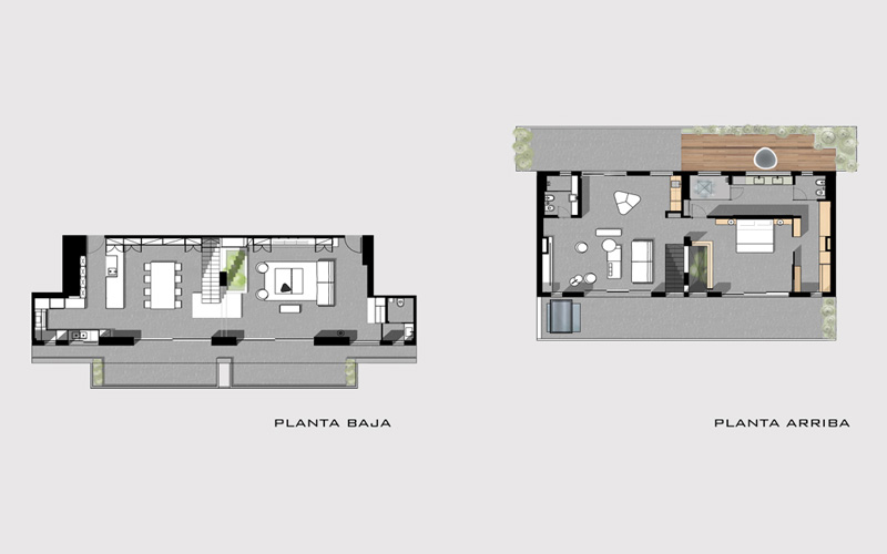 Remy Arquitectos together with interior designers MYOO, have transformed two duplex apartments into one large apartment in Buenos Aires, Argentina.