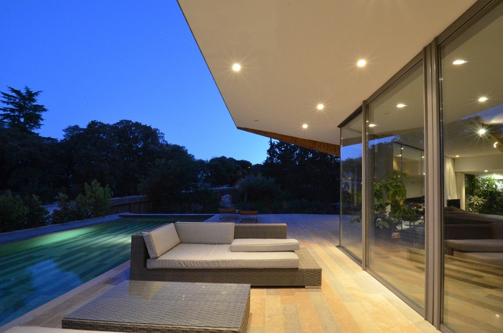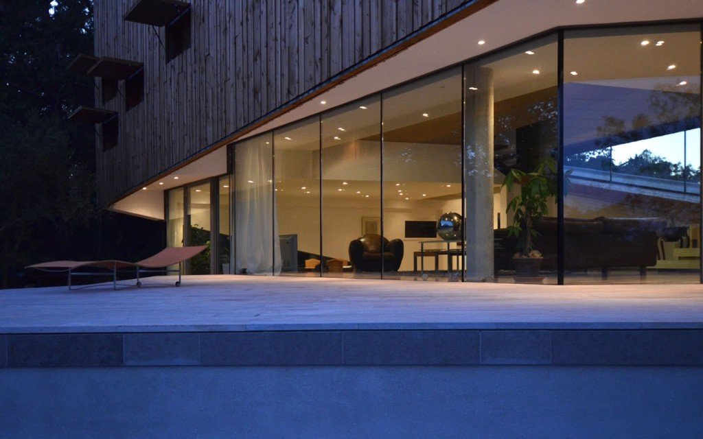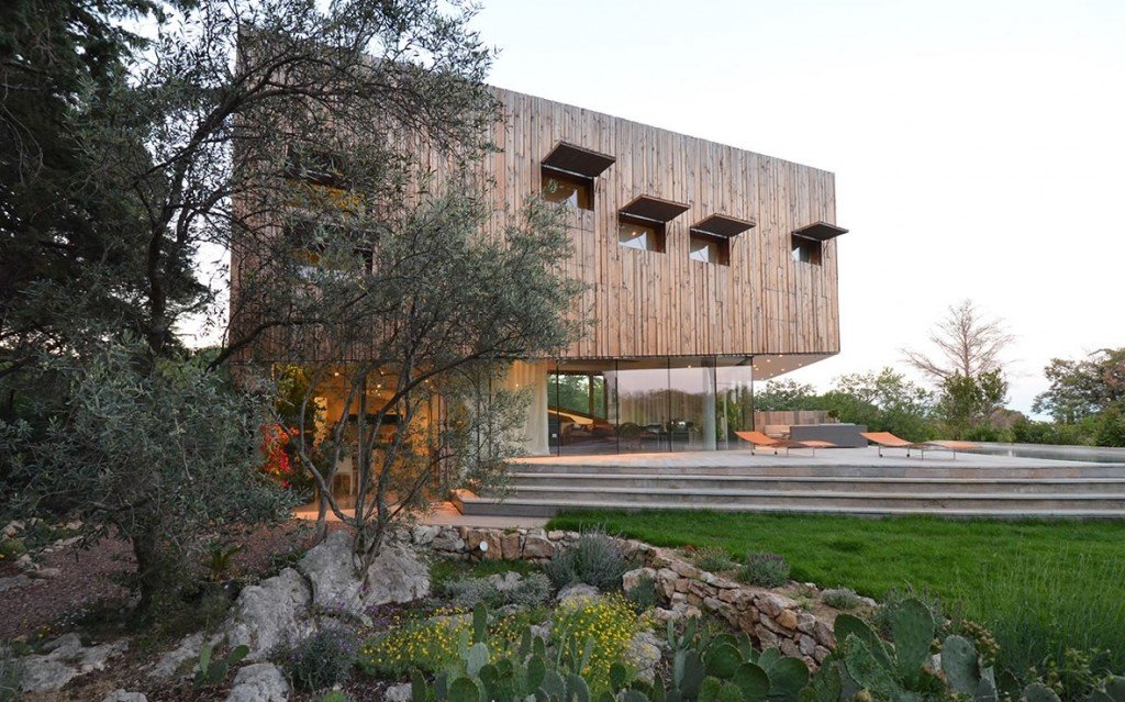-A roof-top terrace from which one can sun-bath while enjoying a panoramic view reaching out to the sea.In manner to create a sleek spacial continuity with the construction showing an obvious and easy access to the roof-top, the house visually elevates itself in a spiral-like shape. This wooden ribbon seems to come out of the ground where it will at first outbound the demarcation of the garden by fencing it and make-out the garden’s technical elements. Finally the structure will wrap itself around the first floor and end-up rimming the Terrace on the roof-top.