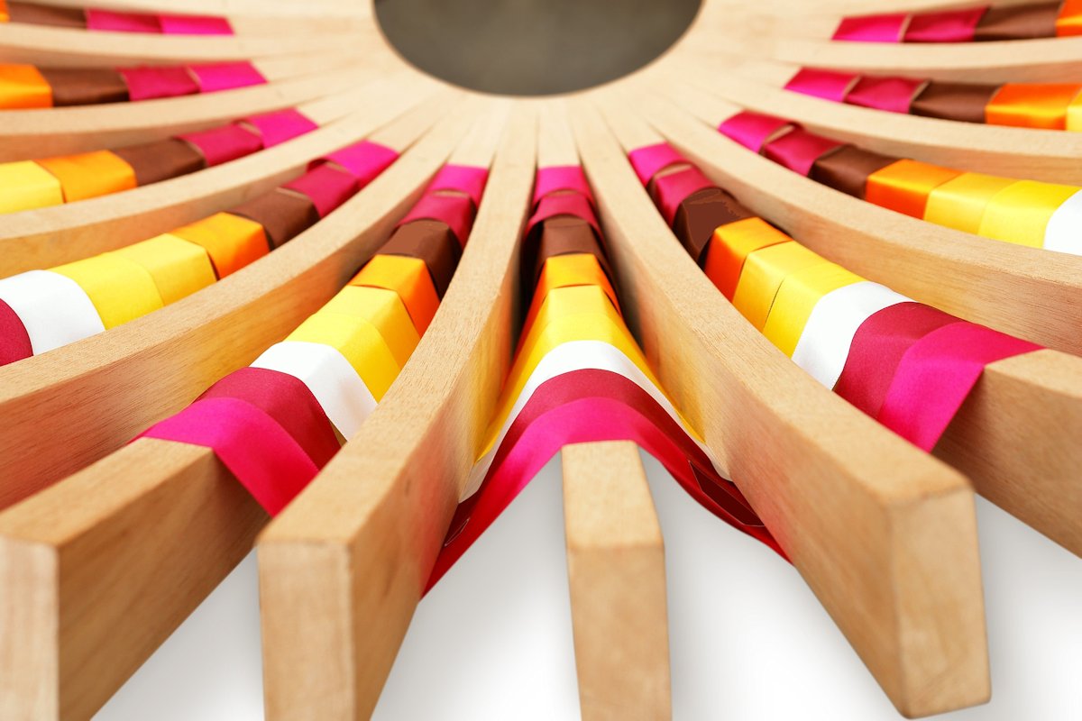 “Maria” is perhaps the closest name to what this work, with its round and elongated arms each holding tissues and the user, together concentrically ways recalls the image of a traditional Mexican dress, which when rotated, looks at the wind ruffles our party.