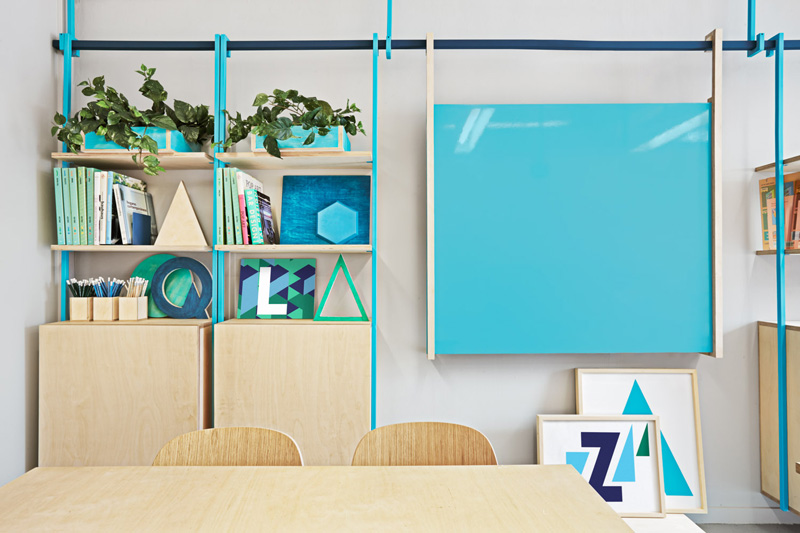 The design of the interior starts with the construction of three-quarter height plywood walls with the aim to make the most from the little natural light that enters into the academy, besides offering acoustic solutions for the classrooms.