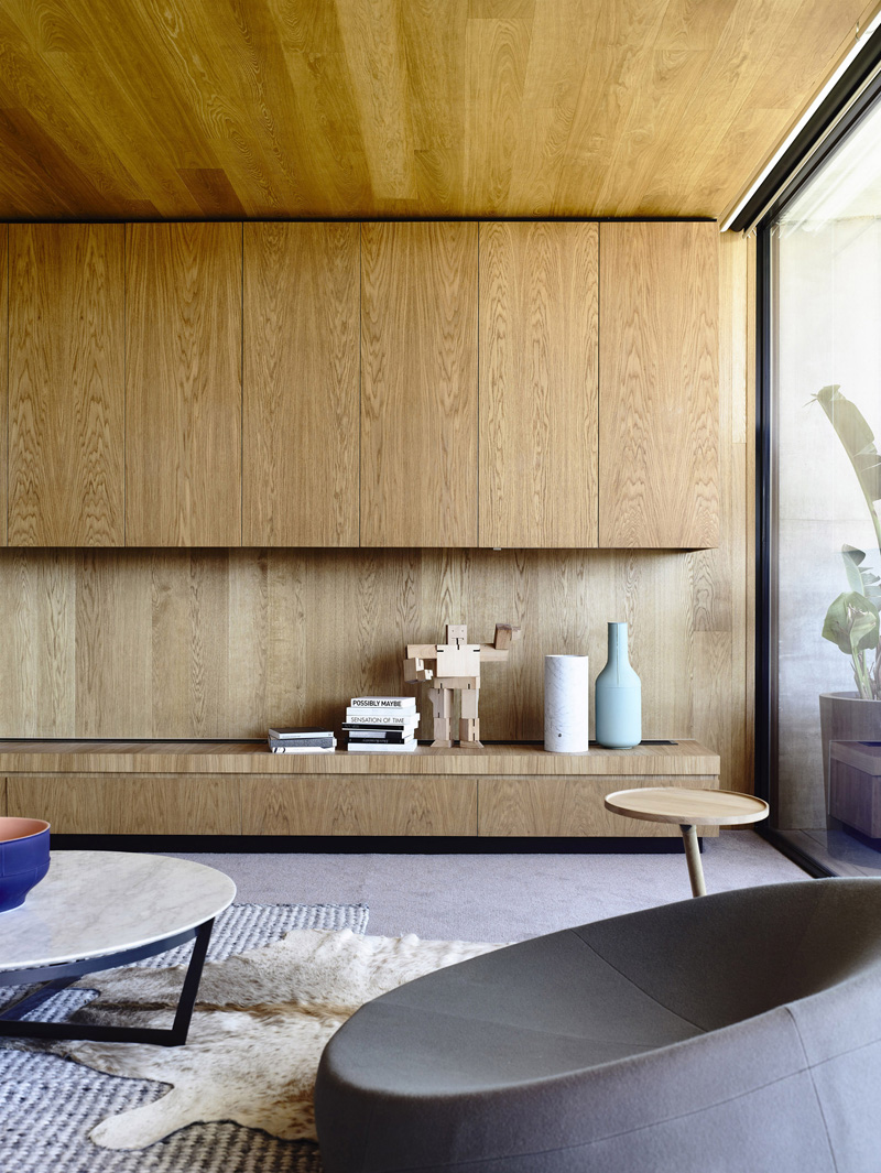 The client, a builder and specialist in masonry was keen to utilise a concrete and stone palette externally. These materials along with a generous utilisation of naturally finished timber became the determining elements of both the houses’ architecture and interior.