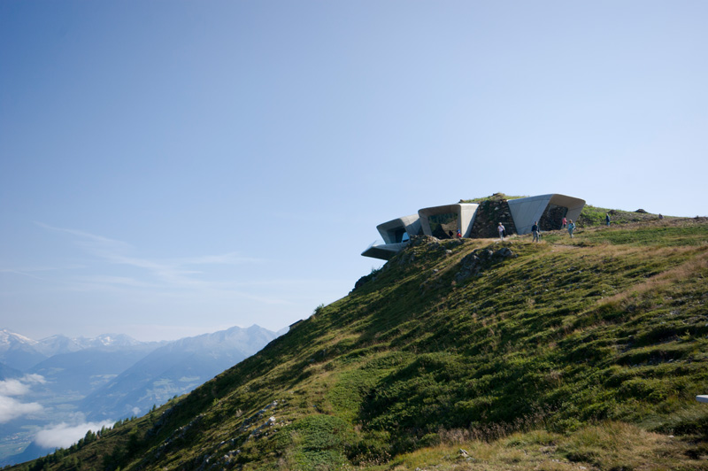 Reinhold Messner’s vision for a museum of submerged into the peak of Mount Kronplatz detailed three very specific locations of where the museum should emerge from ground: “In the first, a window looking out southwest to the peak of the Peitlerkofel mountain, in the second, another window should look south toward the Heiligkreuzkofel peak, in the third, a balcony should face west to the Ortler and South Tyrol.”