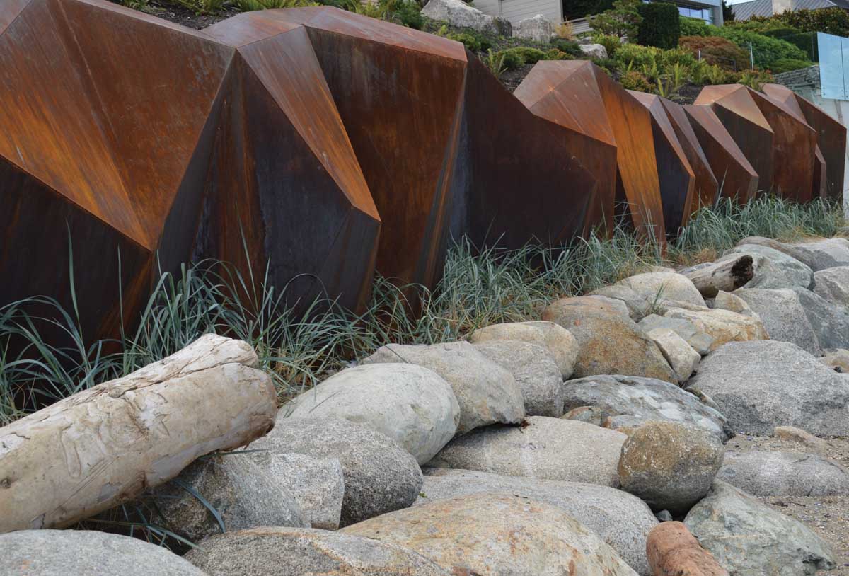 Landscape architect Paul Sangha has created METAMORPHOUS, a corten steel sculpture designed to provide a solution to foreshore erosion for a waterfront property in Vancouver, Canada.