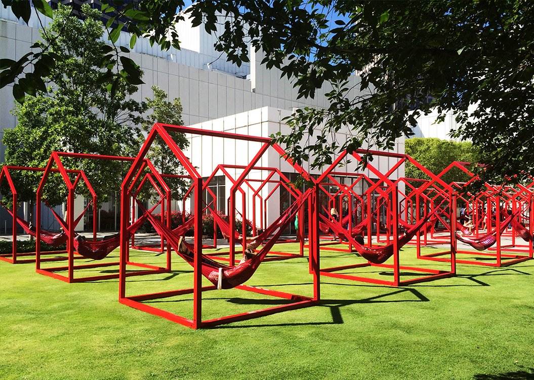As part of a two-year initiative to activate the Sifly Piazza and engage the community in the vibrant campus of the Woodruff Arts Center designed by Renzo Piano, the High Museum of Art unveiled an ambitious interactive design installation entitled Mi Casa-Your Casa, conceptualized and created by contemporary Mexican designers-in-residence Héctor Esrawe and Ignacio Cadena. Mi Casa-Your Casa is a site-specific installation that will invite the community to actively participate in the life of the entire Woodruff Arts Center campus through recreation, social interaction, performances, and art-making activities.
