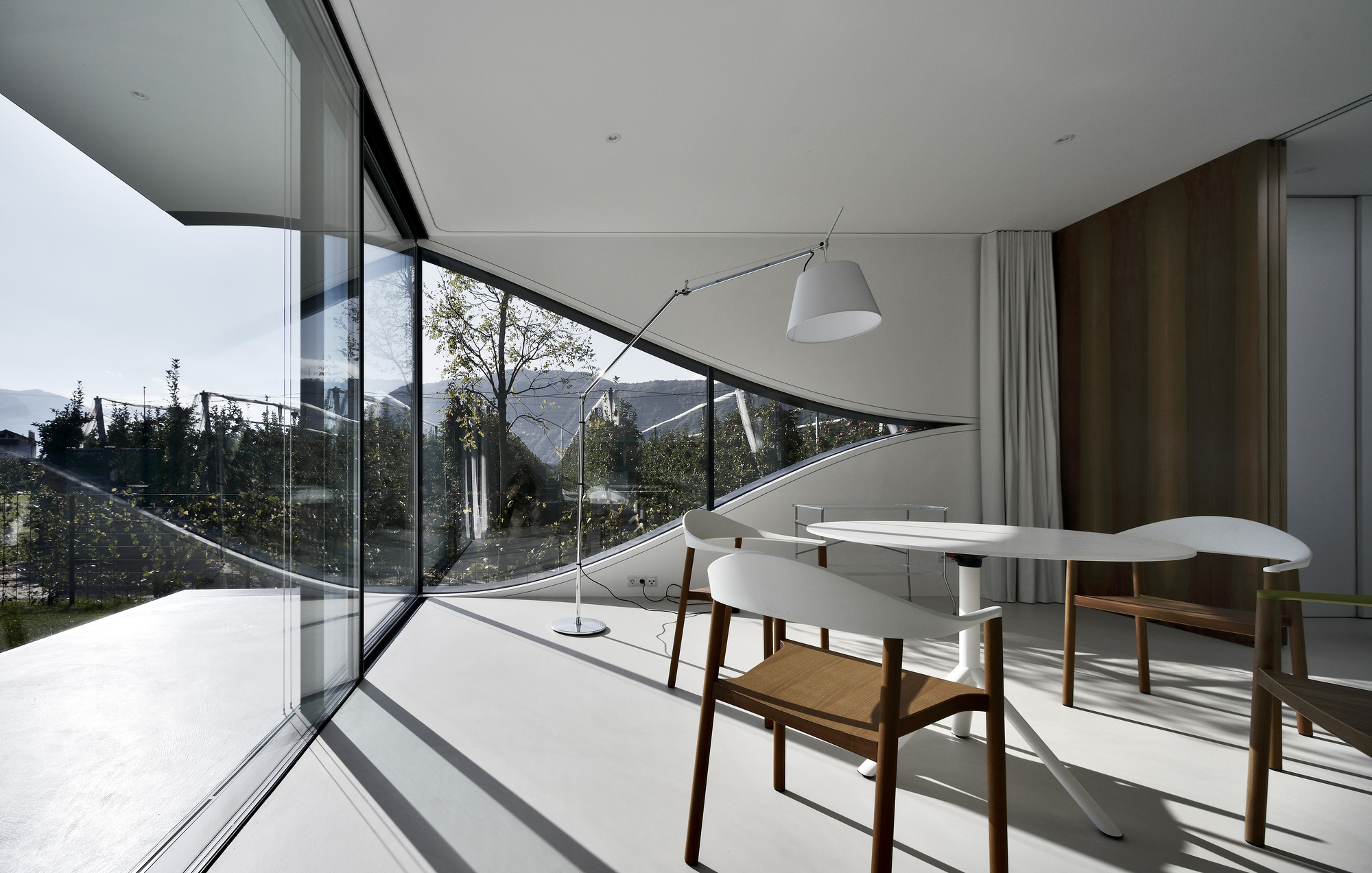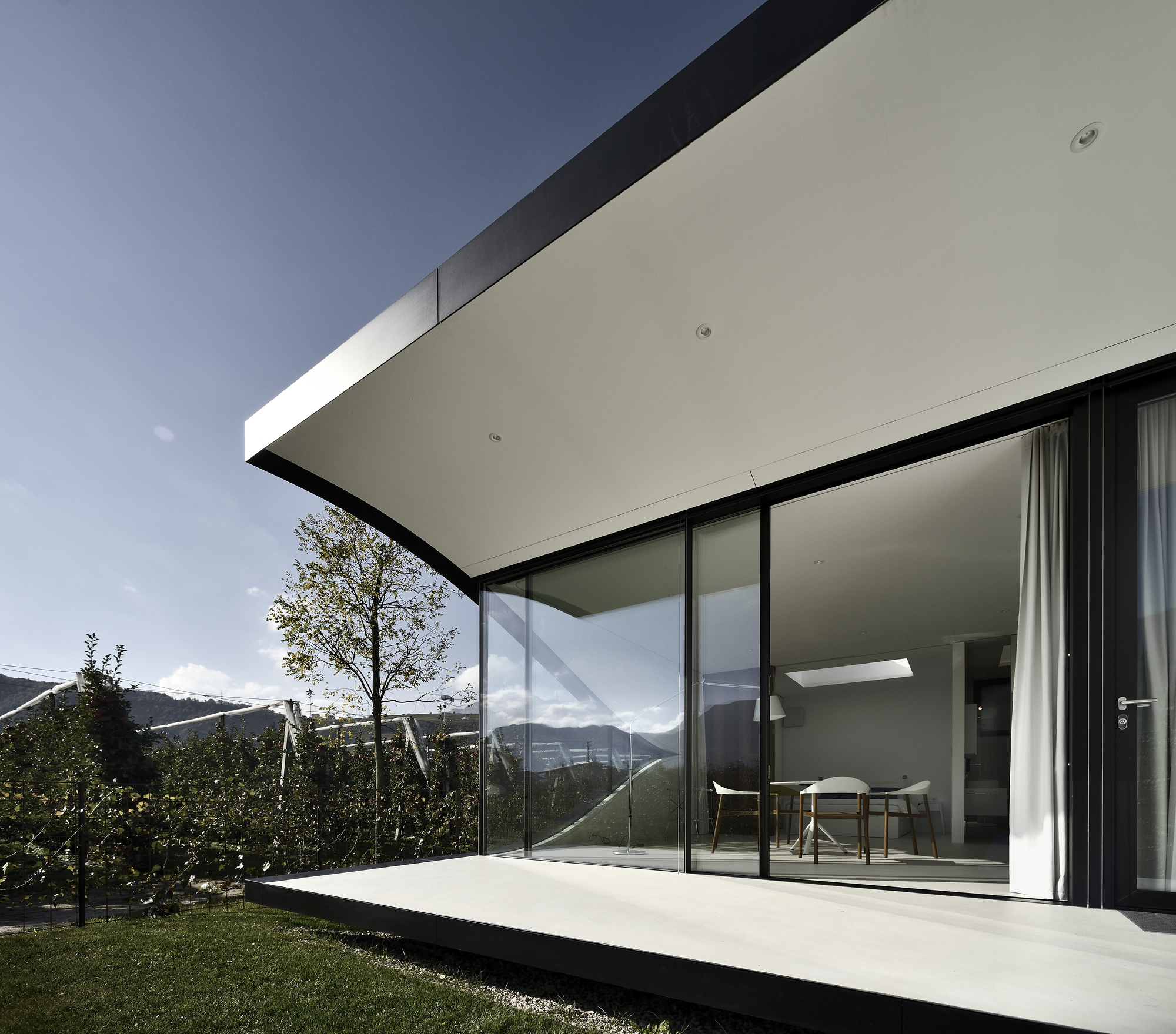 The site of the project is located in the midst of apple orchards close to Bolzano, north Italy, and is surrounded by the spectacular mountains of the dolomites.