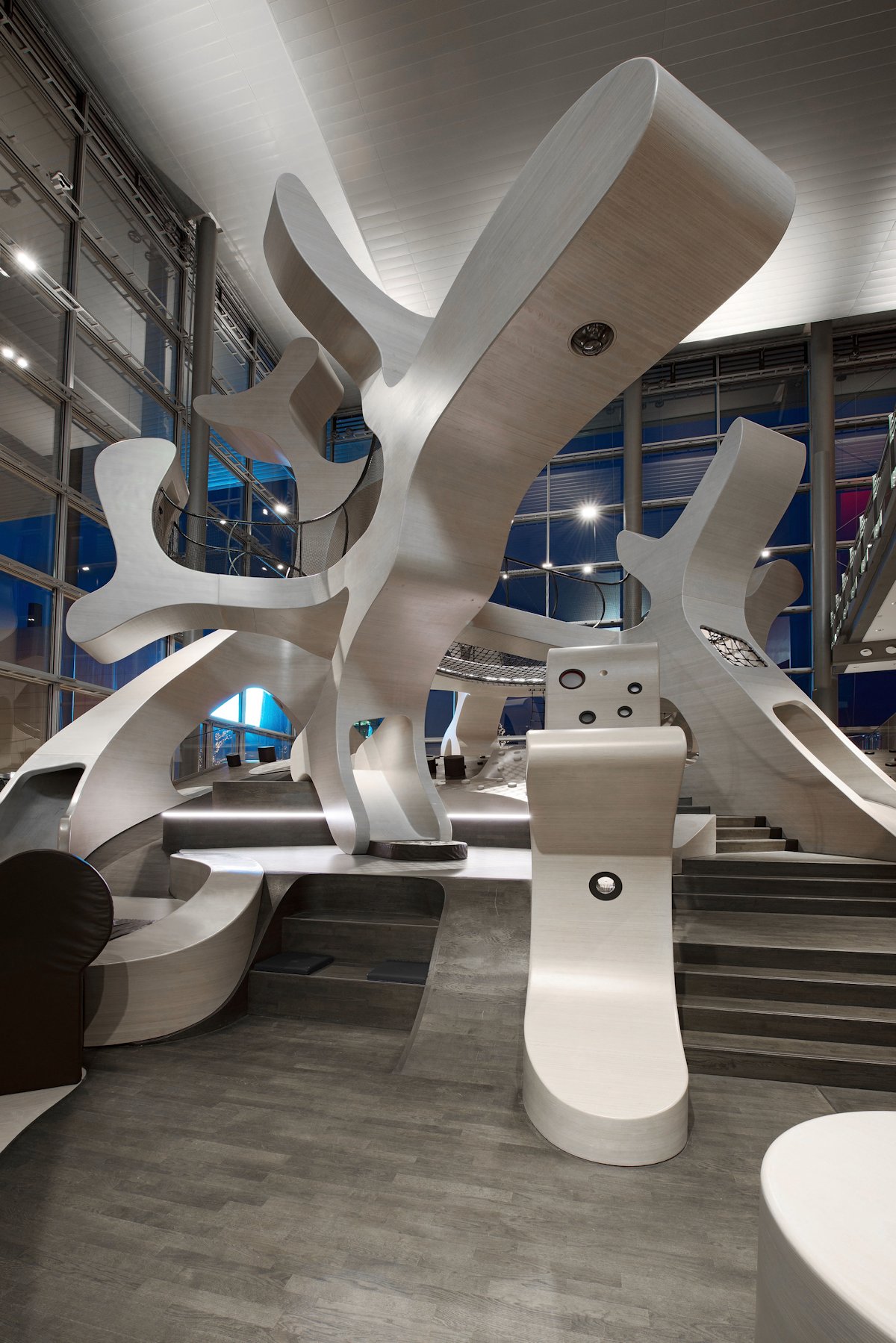 J. MAYER H. designed MobiVersum as a new interaction surface for young visitors to Autostadt Wolfsburg, integrated as part of the overall context of Autostadt “People, Cars, and What Moves Them.”