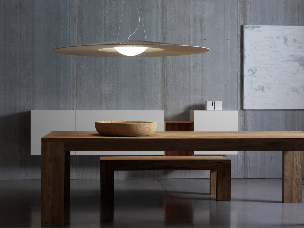 A harmonious rhythm of proportions defines the family Mood, suspension and wall/ceiling lamps with a strong decorative impact.