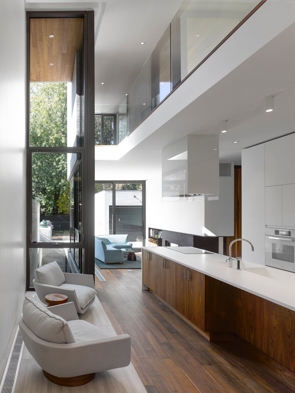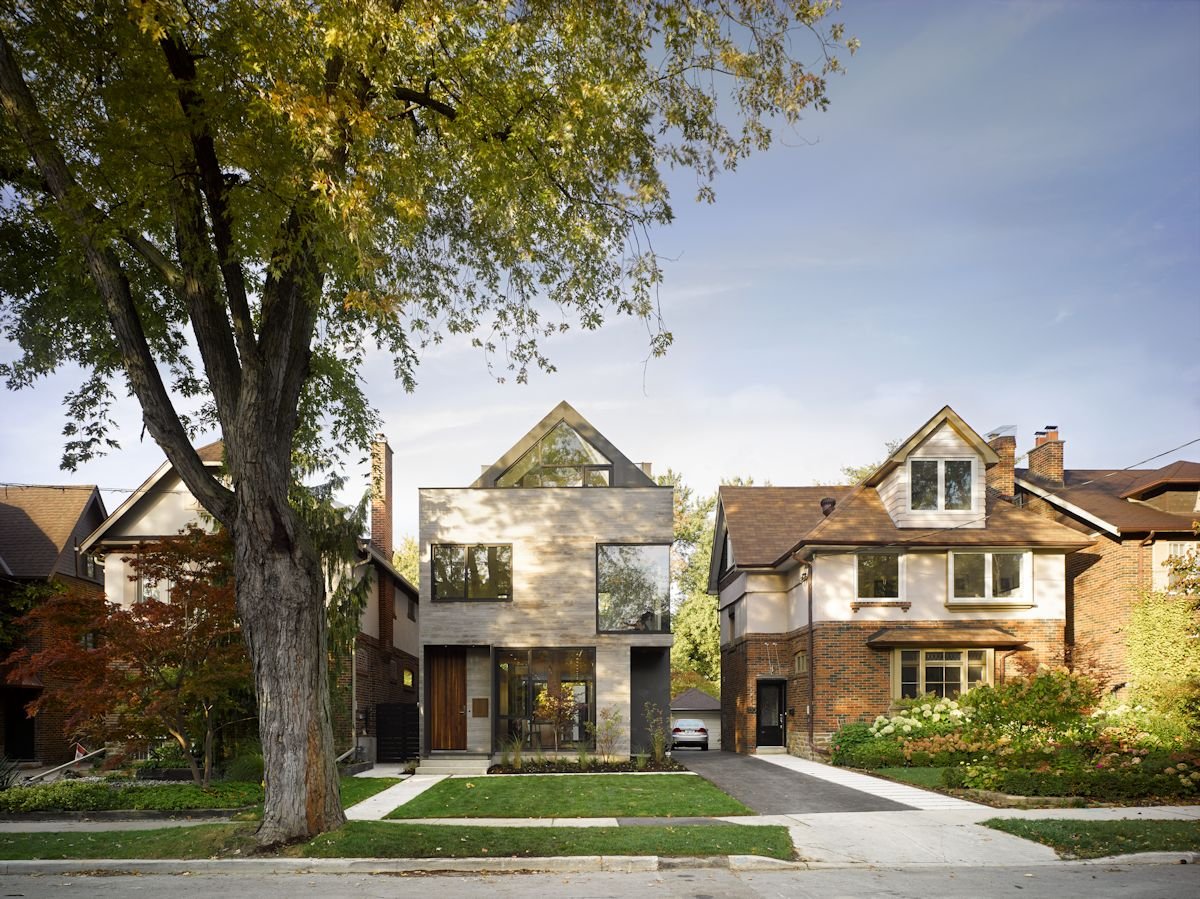 This infill house is situated in the mid-town Toronto residential neighborhood of Moore Park. It represents the first tear-down replacement on an established street that is characterized by a common model: 1920s-era single-family homes with mutual drives. The concept of the project is to integrate a re-imagined single-family residence into a typical Toronto streetscape.
