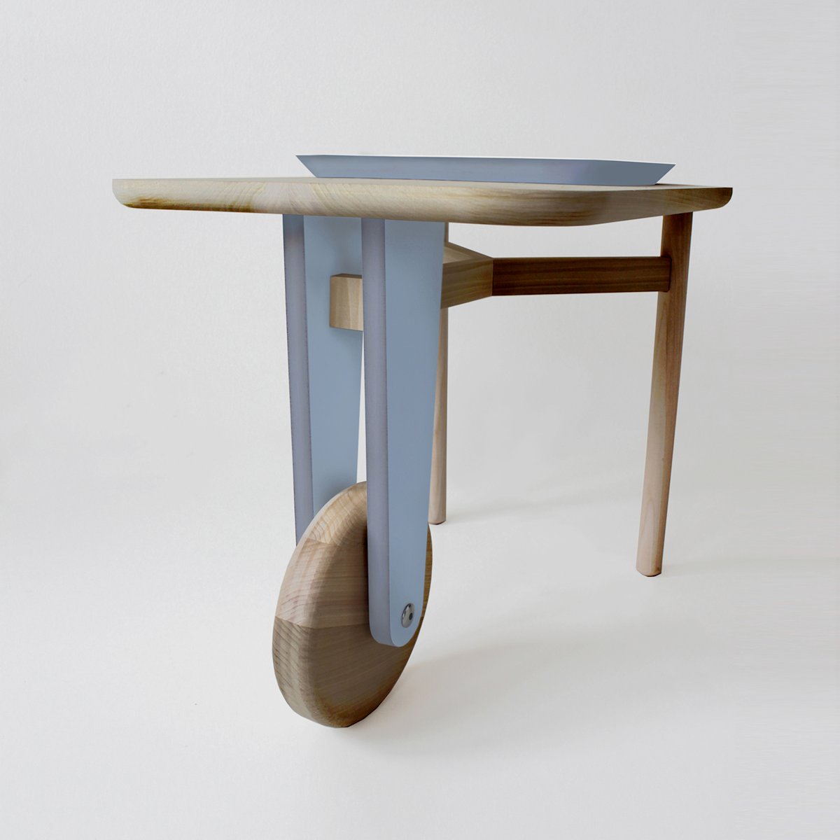 The result is a hybrid, a formal mutation halfway between a table and a wheelbarrow. A “crossbreed”.