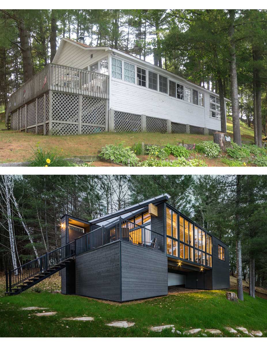 The site for this project is a remote, private lake beside which for more than seventy years existed a family’s timber-frame cottage. When the land passed from mother to son, the decision was made to reinvigorate the home; ultimately, because the home had already reached such an advanced state of decay, it was decided to have it removed and to build a new cottage. For sentimental reasons, the new home was to be the exact dimensions of the former and it was to sit in the exact same location. Aside from those requirements, though, a far more open spatial arrangement was desired, but the character of the original wood home had to be reintroduced, albeit transformed with a modern architectural language.