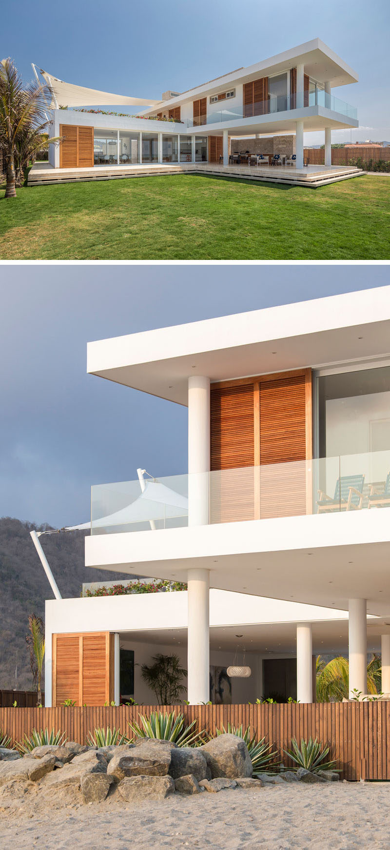 Gabriel Rivera Arquitectos have designed a modern home right on the beach in Puerto Cayo, Ecuador. The house is organized in an L shape, with one side pointing towards the beach, and the other containing the social areas of the home.