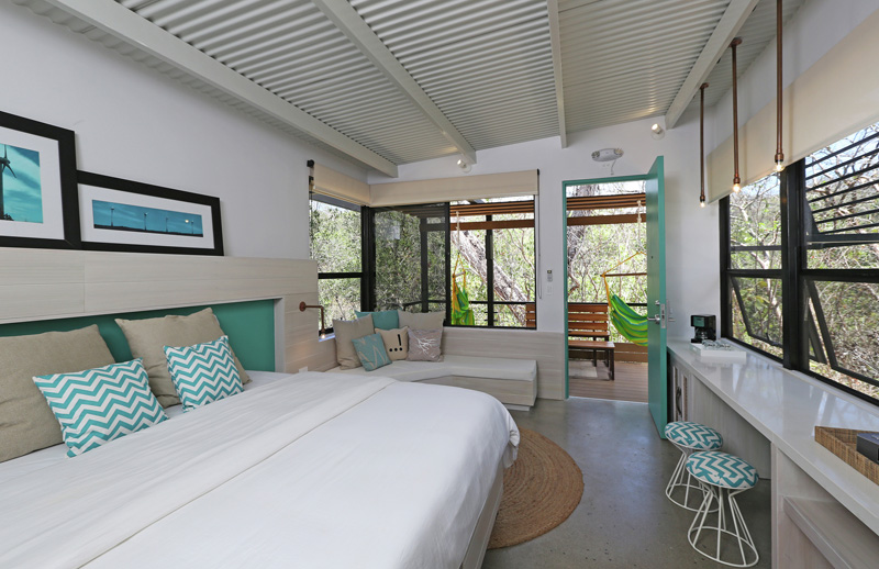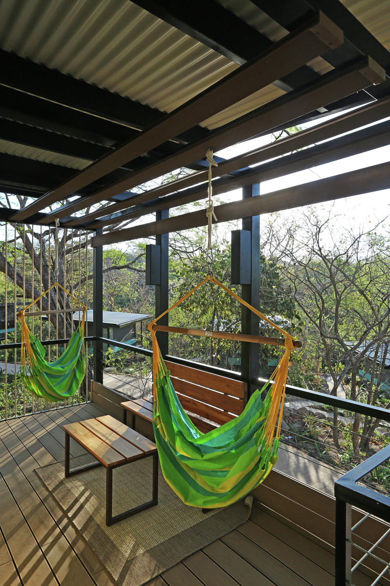 From the interior outward, the bungalows are meant to reflect the freshness and serenity that the trees evoke, bringing the sound of monkeys and insects to the balcony terrace, framing the sunset and freezing the motion and sound of the wind in the tops of meddling trees.