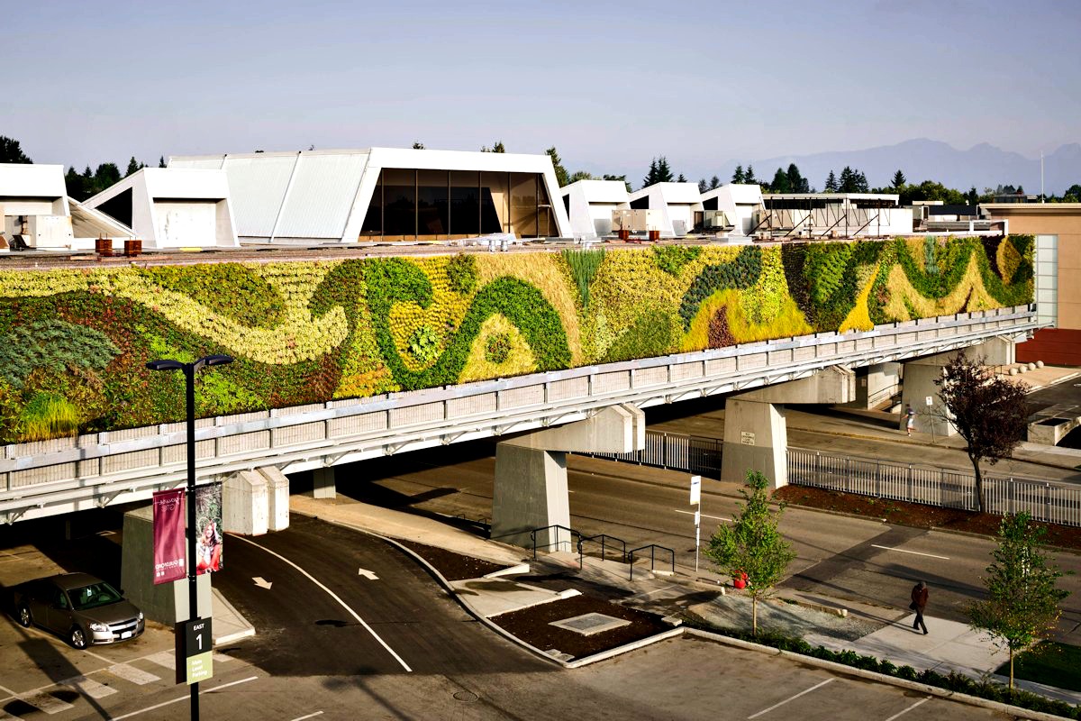 The name of this living wall project is “Mountains & Trees, Waves & Pebbles”. It was completed for Guildford Town Centre in Surrey, British Columbia, it is unique for several reasons :