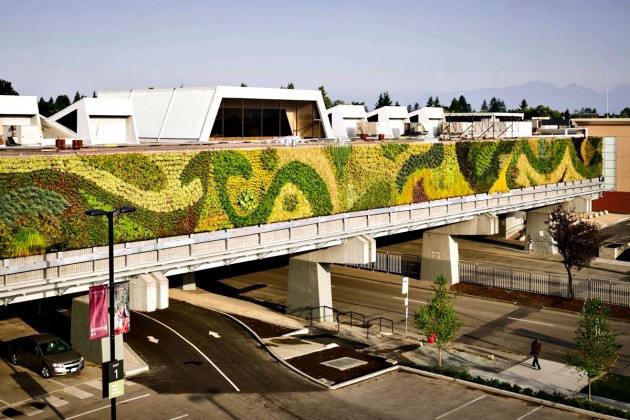 At over 10,000 square feet (10,150 square feet to be exact) , is is by far the largest living wall installation anywhere in North America and broke our previous records for the Semiahmoo Library (British Columbia, Canada, 3,000 square feet, completed in 2010) and King County Library in (Bellevue, WA , 3145 sqft).