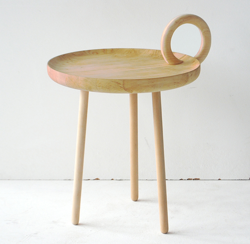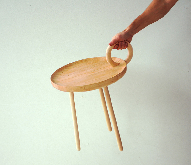 Ola Giertz has designed the O-Table, a small wood table inspired by the design of antique candle holders and their handles for carrying them around.