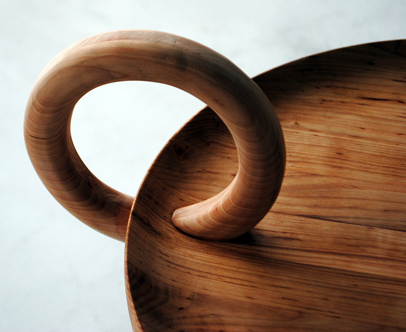 The name of the table comes from the circular shapes that are recurrent in the table top, the rounded legs and the round handle. The handle also breaks the horizontal line in the table top which creates greater dynamism. Together these forms create a soft and graphical furniture with a minimalistic touch.