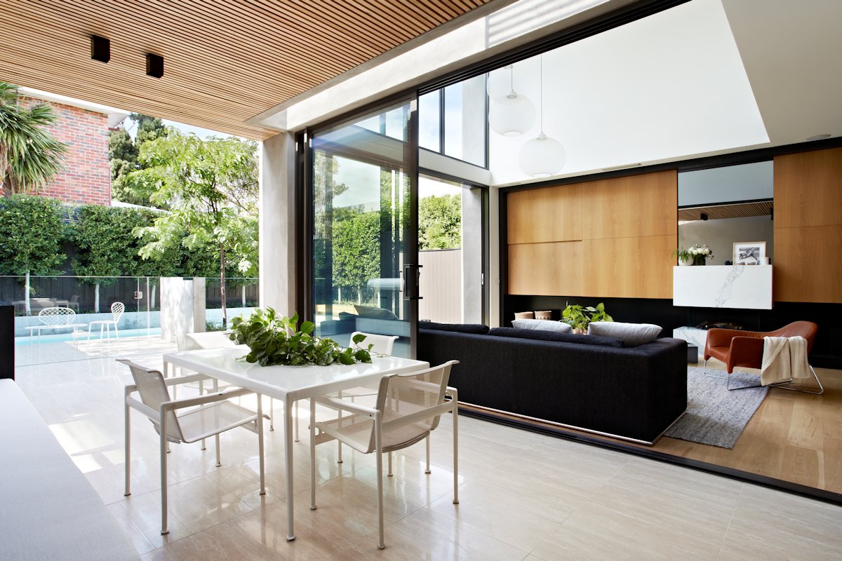 Positioned on only 480m2 of land, this house at 370m2 of living and garage offer a highly unique experience for inner city Melbourne living. The spaces are large without feeling cavernous and the abundant use of glazing brings so much natural light into the home that ones feels like they are outside as much as they are inside.