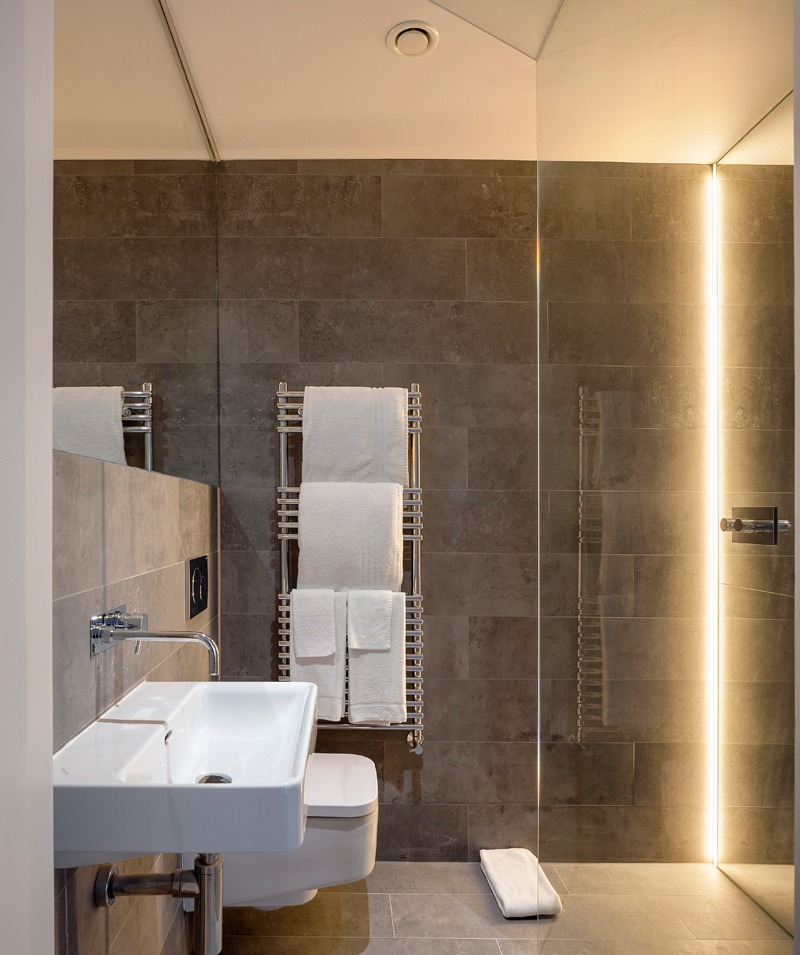 Each fully tiled en-suite bathroom has a high pressure rainhead shower and glass screen and also benefits from a fitted mirrored storage unit with integrated LED lighting. There is also a full height mirrored wall in the shower area with integrated heatpads. The ground floor accommodation also includes a fully fitted utility room and direct access to the garage space.