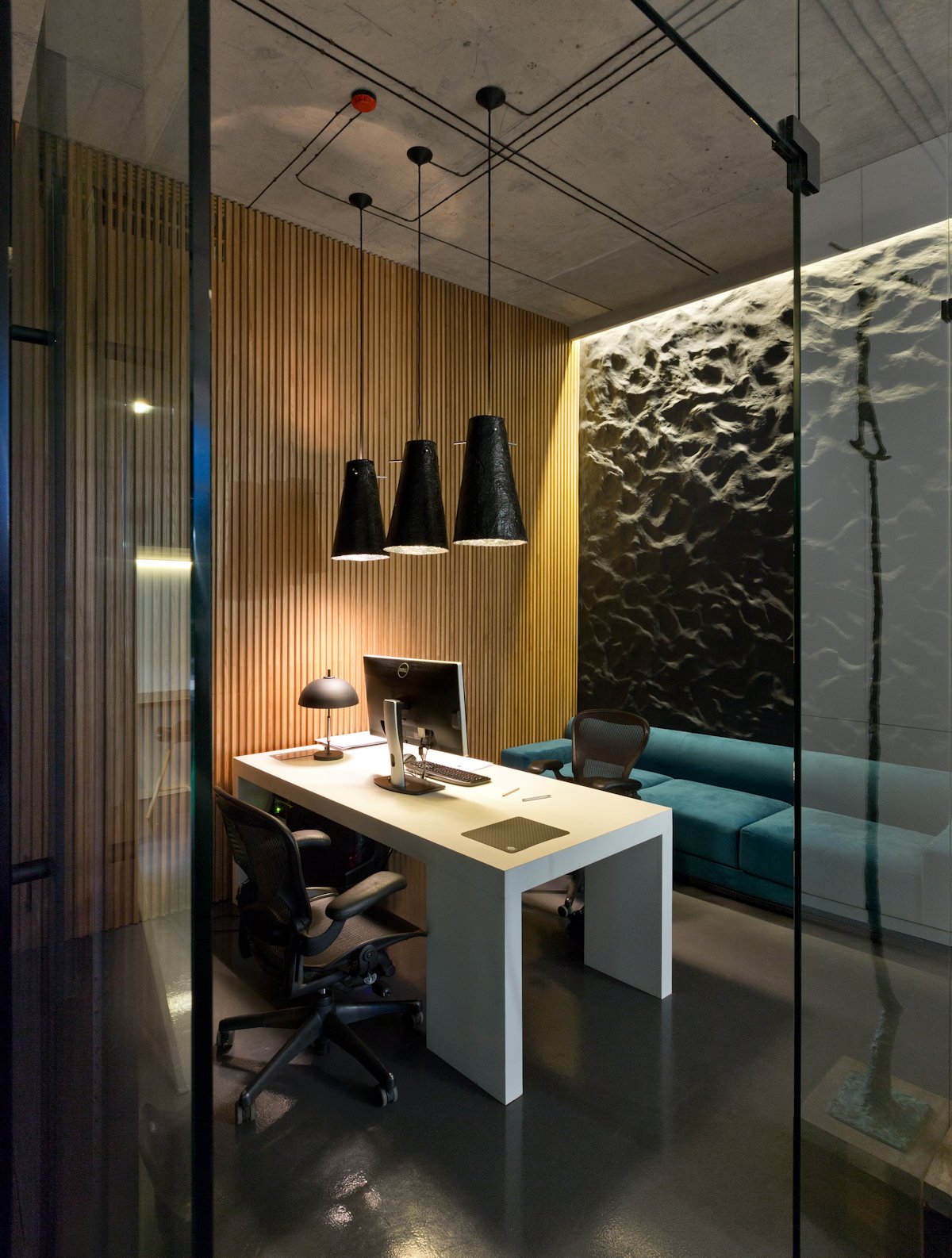 The works of talented Ukrainian sculptors and artists create a special mood in the minimalist workshop. The bass-reliefs, unique statues, author’s décor and furnishings are united to complete more than just an office but an original showroom of Ukrainian design and art.