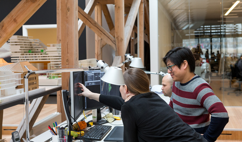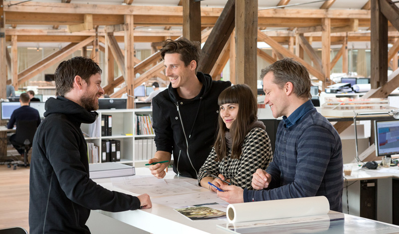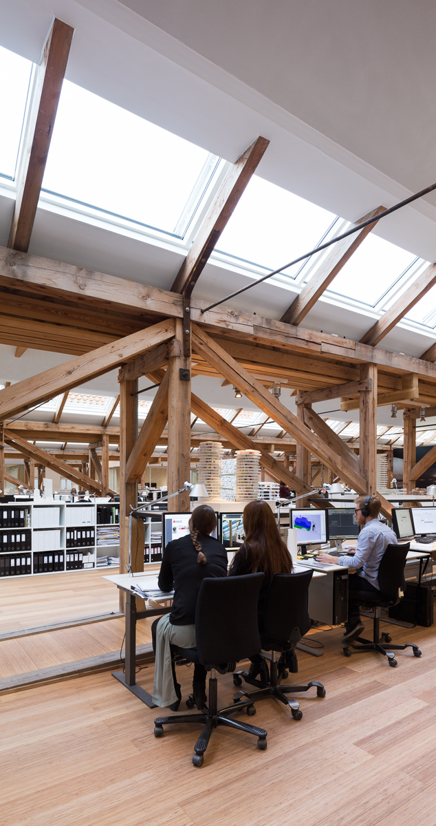 A non-hierarchical culture, all partners sit in the open studio with the staff, which cultivates openness and sharing.