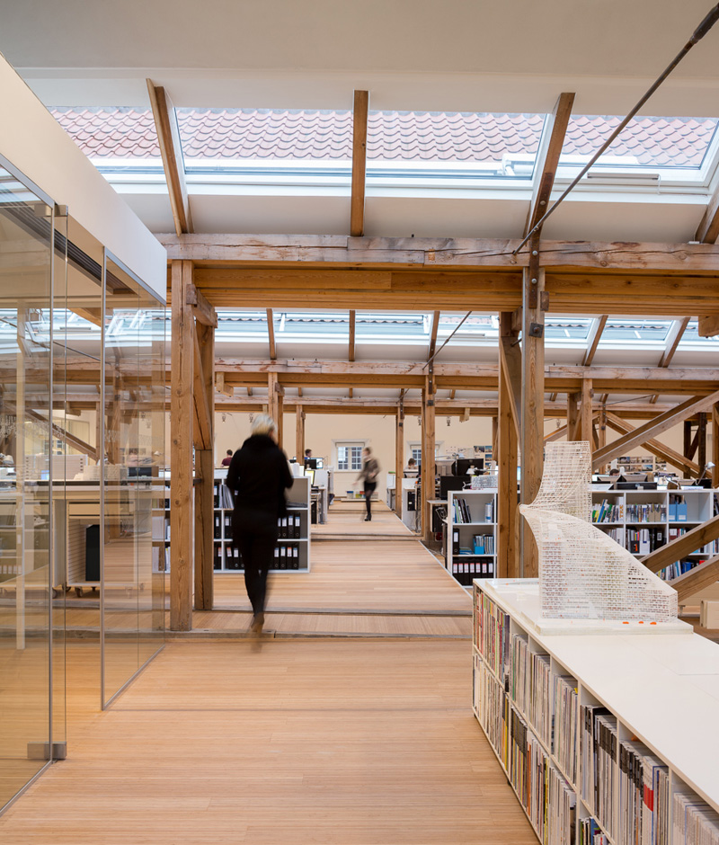 While the exterior of the building is protected, 3XN did remove several existing interior dividers to open up the working area.