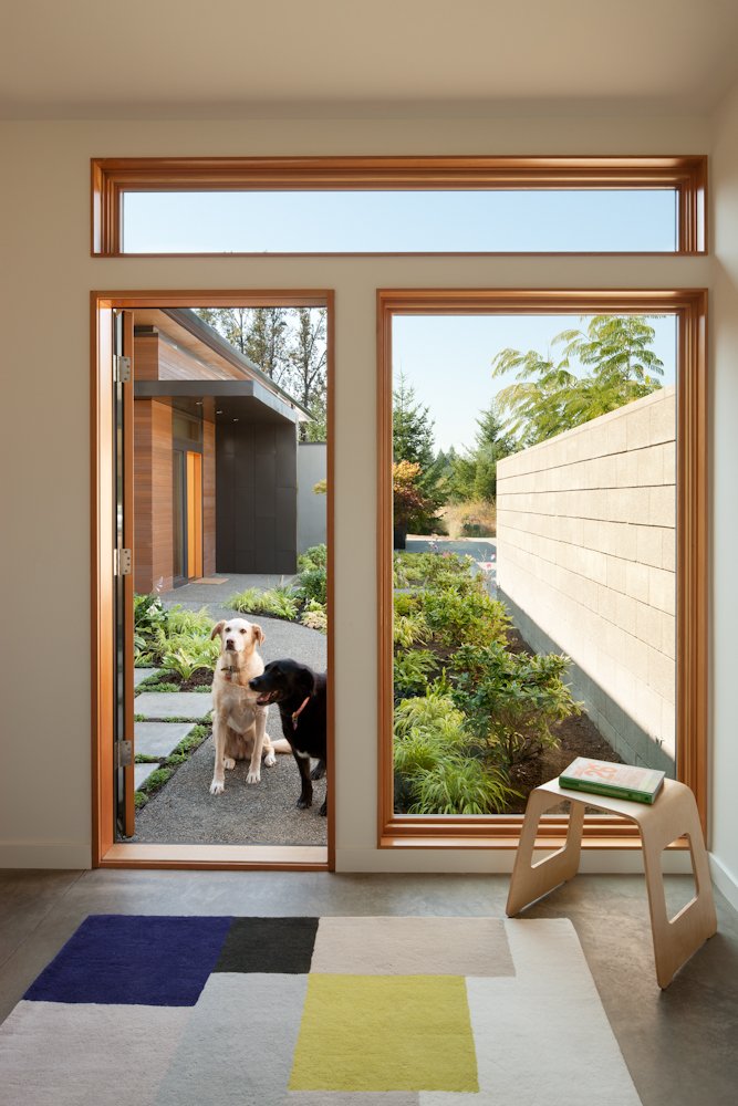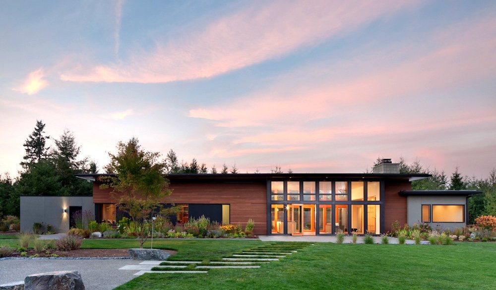 Most importantly, the Yelm residence proves that modern architecture and pristine nature are not mutually exclusive. Indoors and outdoors meld thanks to the extension of interior concrete flooring to an outdoor patio area; the natural birch and cedar interior echoes its wooded views; and a completely flat roof and horizontal profile resemble the flat prairie setting.