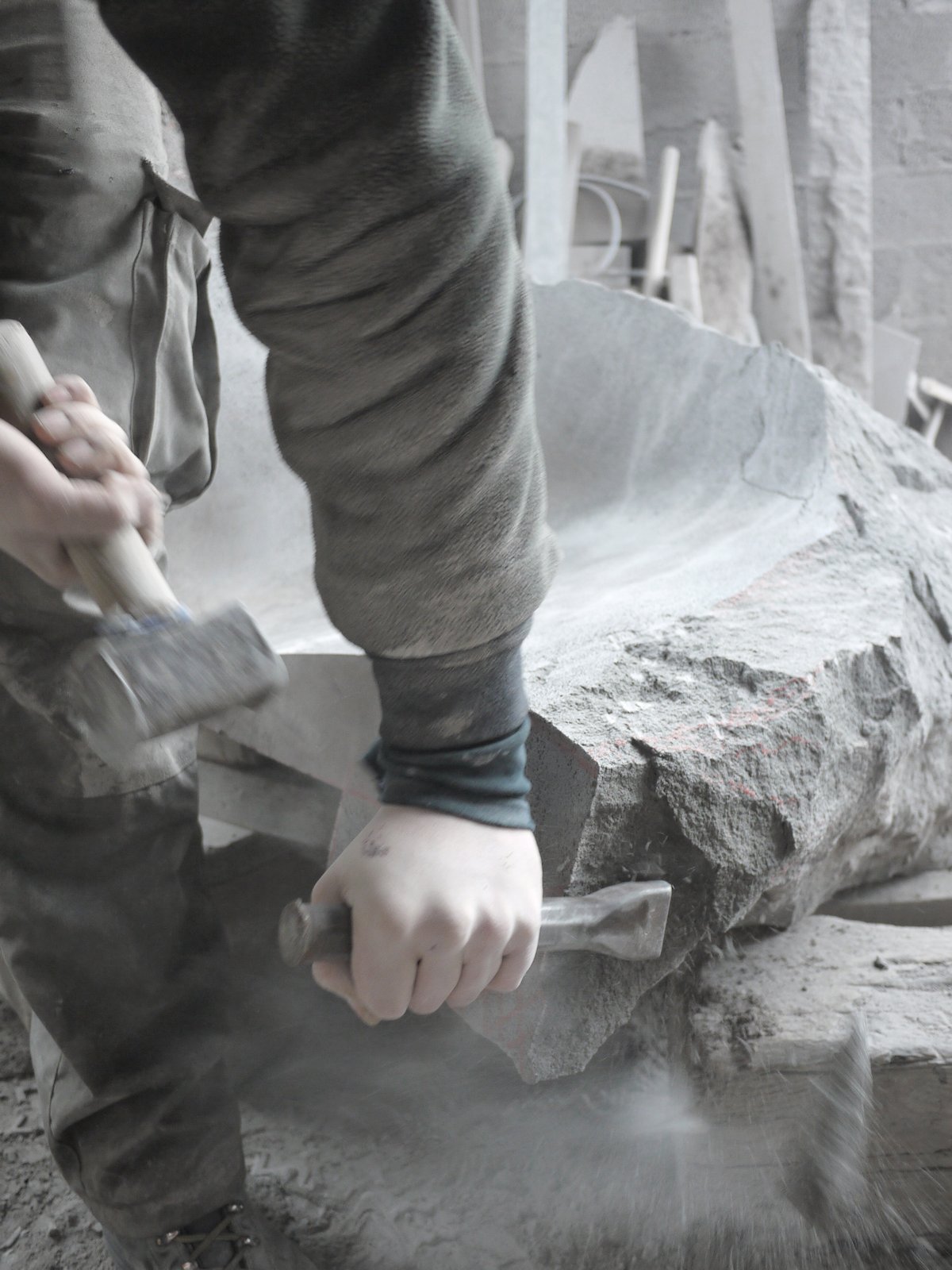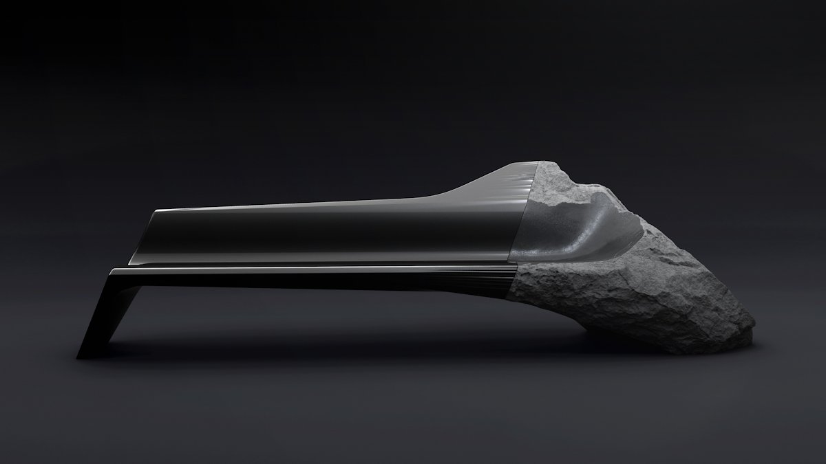 The ONYX is a carved sofa sitting 3 meters long consisting of carbon and Volvic lava. This is the first in a series of unique furniture, custom.