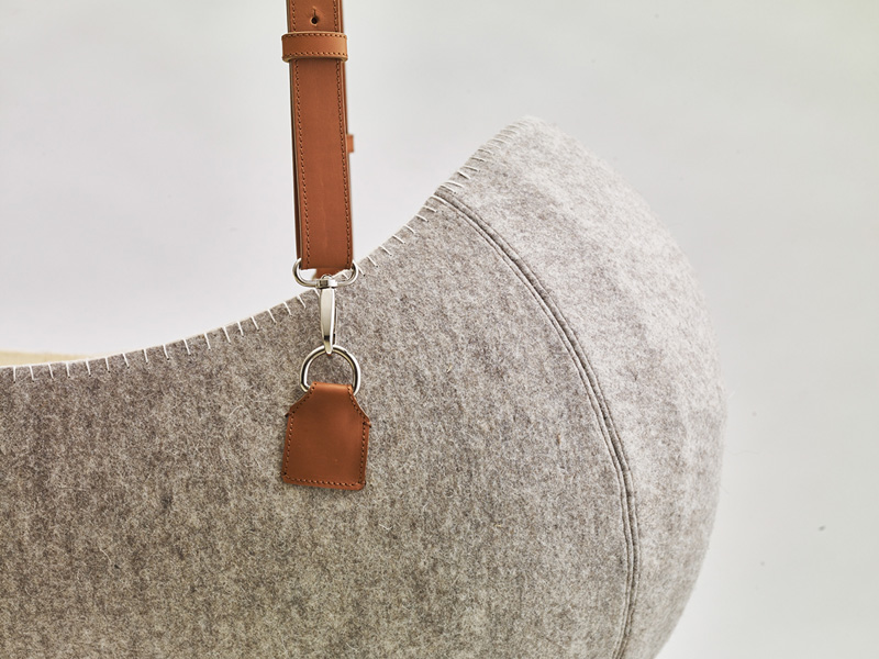 Shaped out of one single wool felt piece, the cradle hugs around the baby as a protective shell taking care of their peaceful rest.