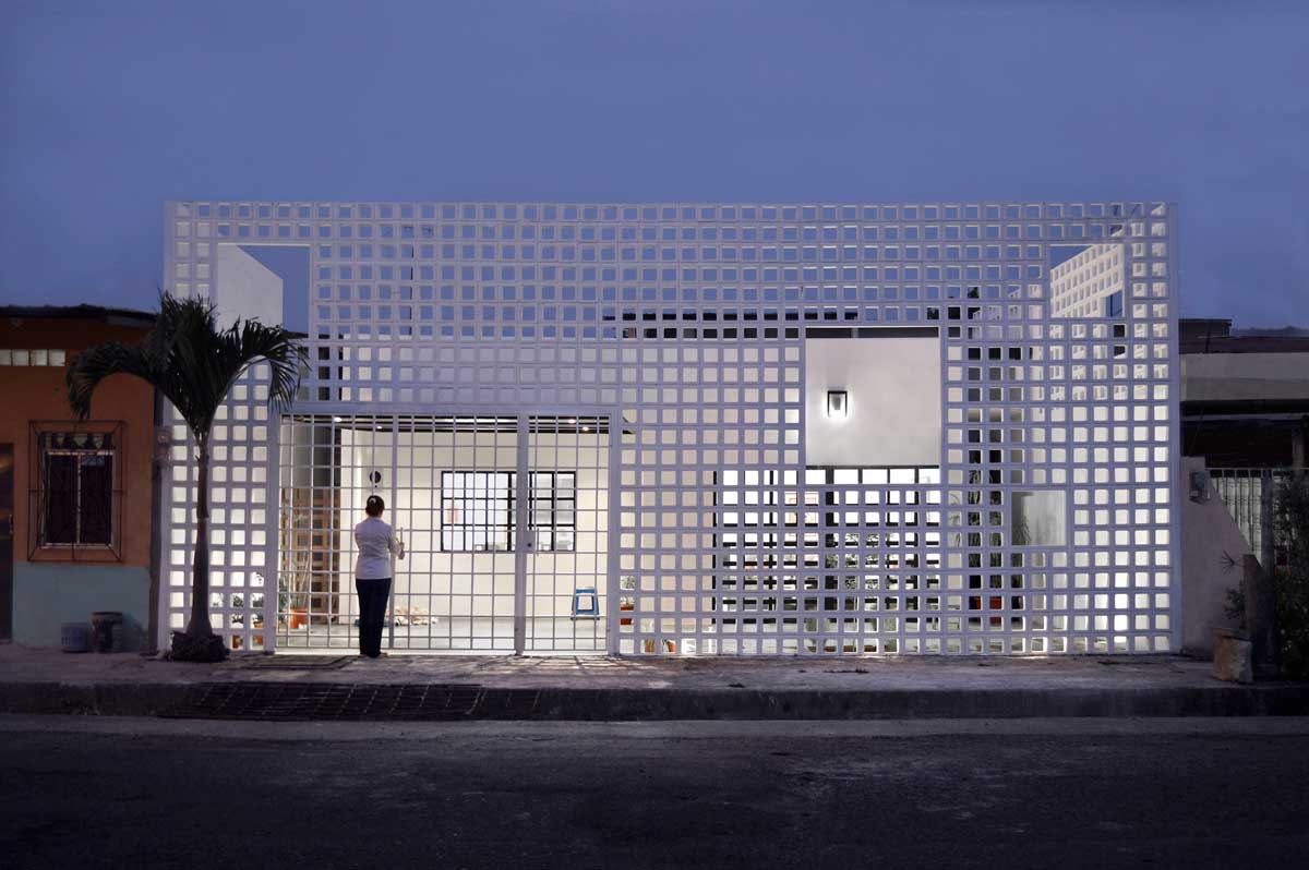 Natura Futura Architecture have designed a screen that encloses the entrance to the courtyard in front of this home in Babahoyo, Ecuador.