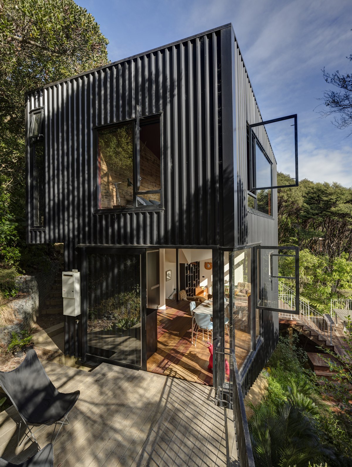 Glamuzina Paterson Architects designed a one-bedroom house on Waiheke Island, New Zealand, for a couple on a very modest budget.