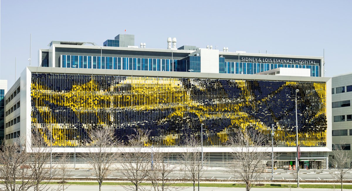Rob Ley of Urbana Studio has recently completed May-September, an interactive art facade made from 7,000 angled metal panels attached to a parking structure at the new Eskenazi Hospital in Indianapolis, Indiana.