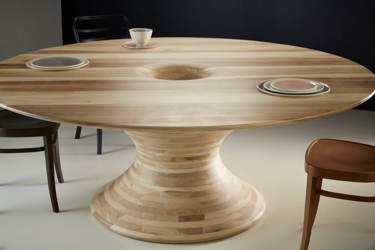As part of The Wish List, dRMM’s Alex de Rijke commissioned furniture makers Barnby & Day to create a round table using Tulipwood.