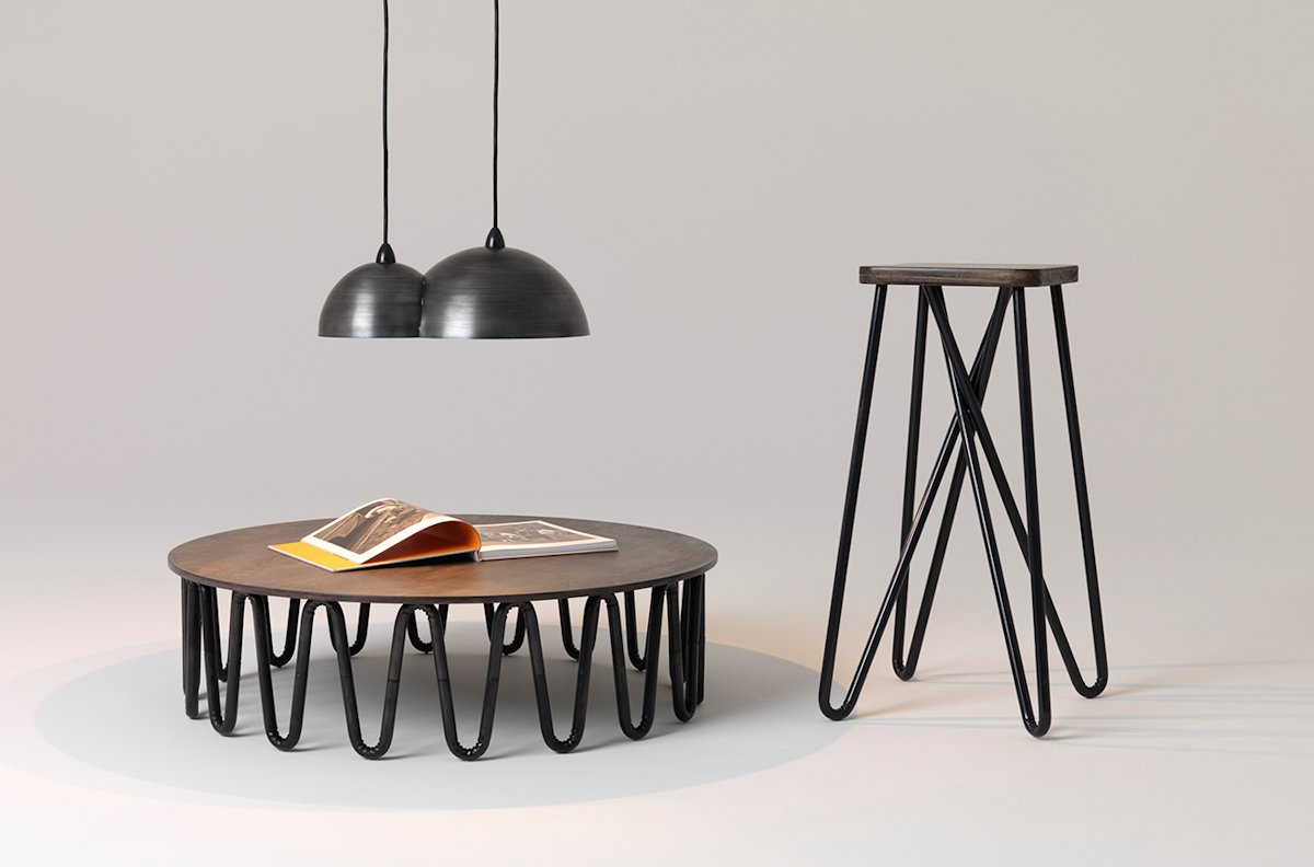 New Zealand designer Clark Bardsley has created a coffee table named Wrinkle, a bar stool named Tangle and a pendant lamp named Cloud.
