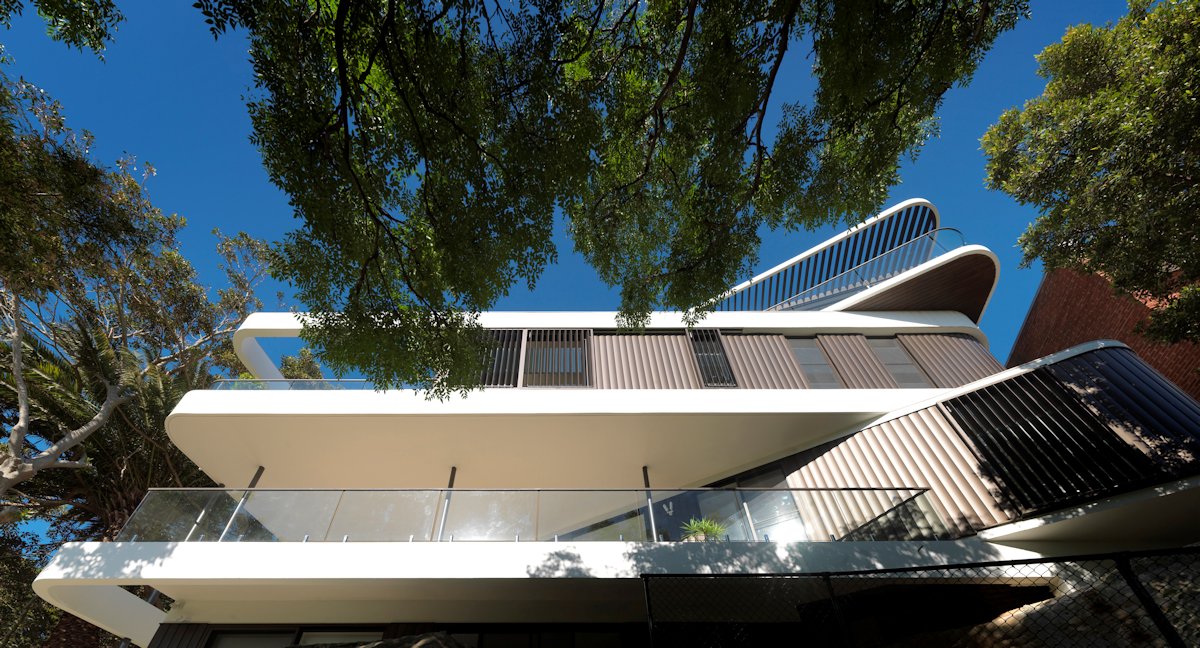 Geometrix Design have completed a black and white bedroom featuring a wavy wall.