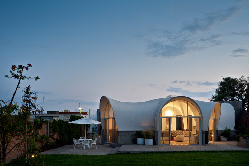The project started when a friend of us inherited of a number of polyester structures recovered from a modular house where they used to spend their weekends in the 1970s. The owners bought a new plot of land in a small town, about one hour from Mexico City in order to accommodate these six parabolic modules and asked PRODUCTORA to reassemble and recycle these fiberglass shapes.